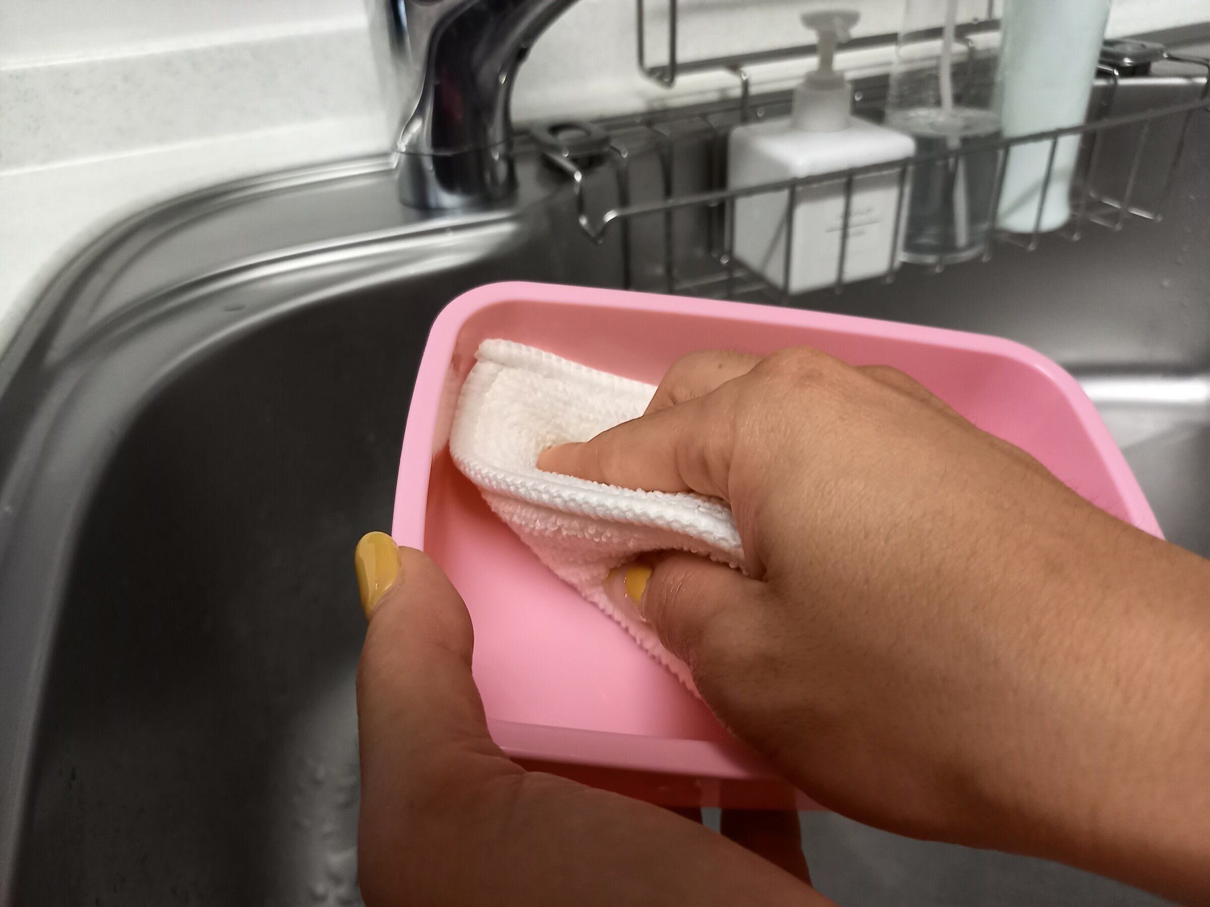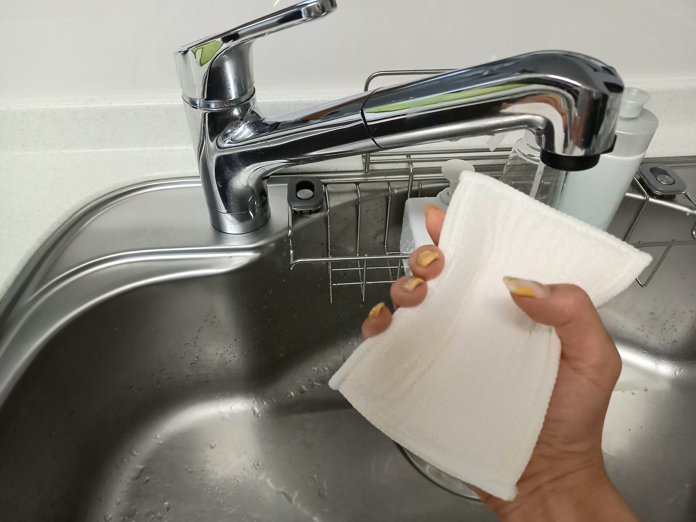 マイクロファイバー素材は、水だけで簡単汚れが落ちるので、洗面台掃除にも一役かってくれます。たとえば、洗面台の手に取りやすい場所に置いておけば、「ついで掃除」でキレイが維持できます。