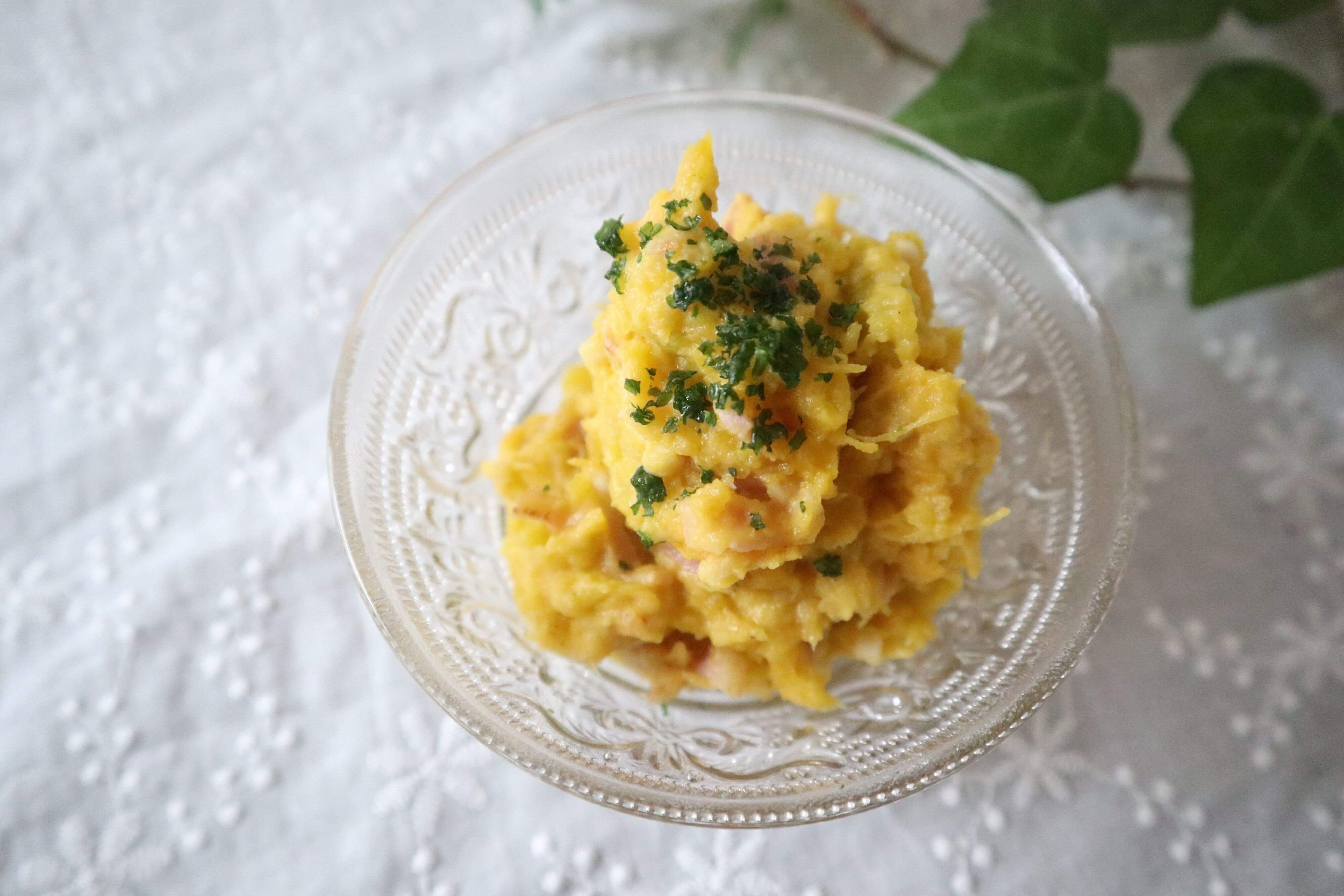かぼちゃのサラダの味つけにも使えます。かぼちゃとも相性抜群!こっくりとしたやさしい甘さがほっこりさせます。サンドイッチの具材にしたり、衣をつけてパンプキンコロッケにアレンジしたりするのもおすすめです。