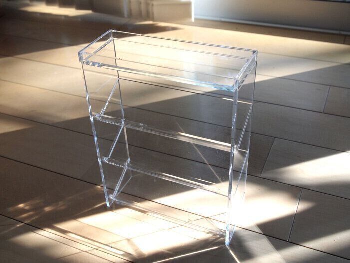 無印良品のアクリル製品はどれも厚みがしっかりしており、傷つきにくい仕様になっています。調味料やおもちゃ、アロマボトルなどさまざまなものが収納でき、斜めについているアクリル板のおかげで取り出しやすい構造になっています。