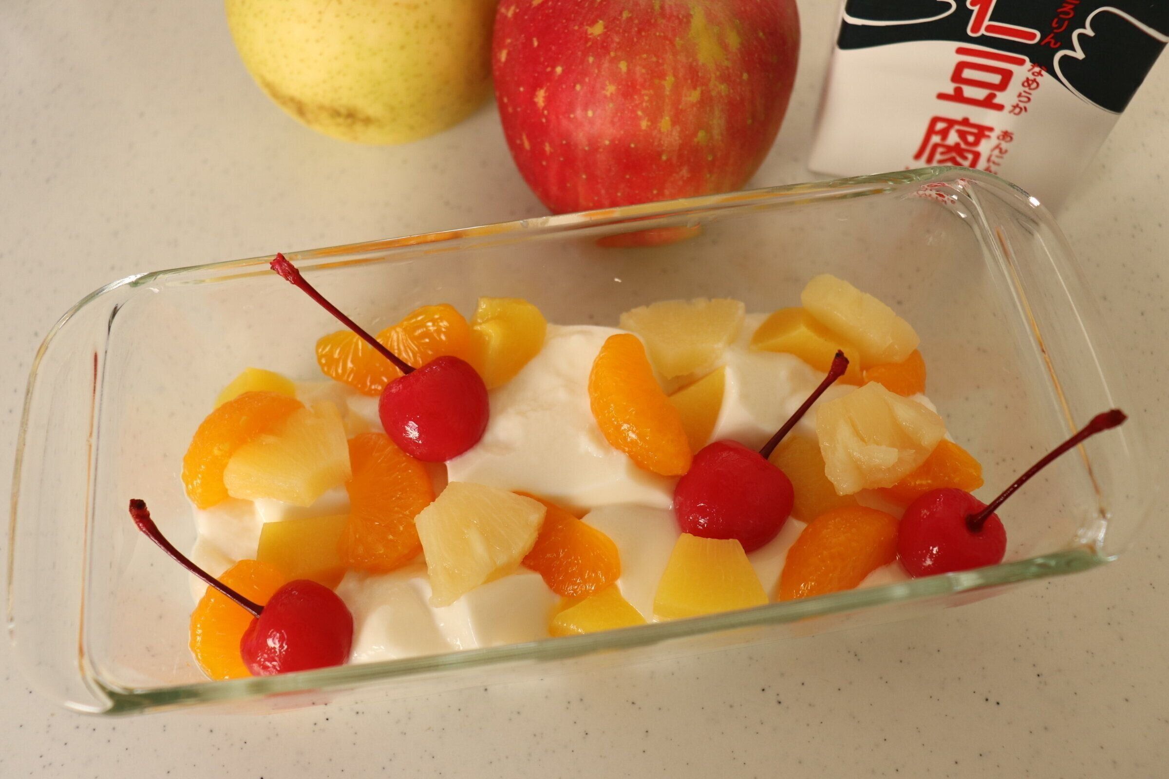 パックを開けて盛りつけるだけですぐに本格杏仁豆腐