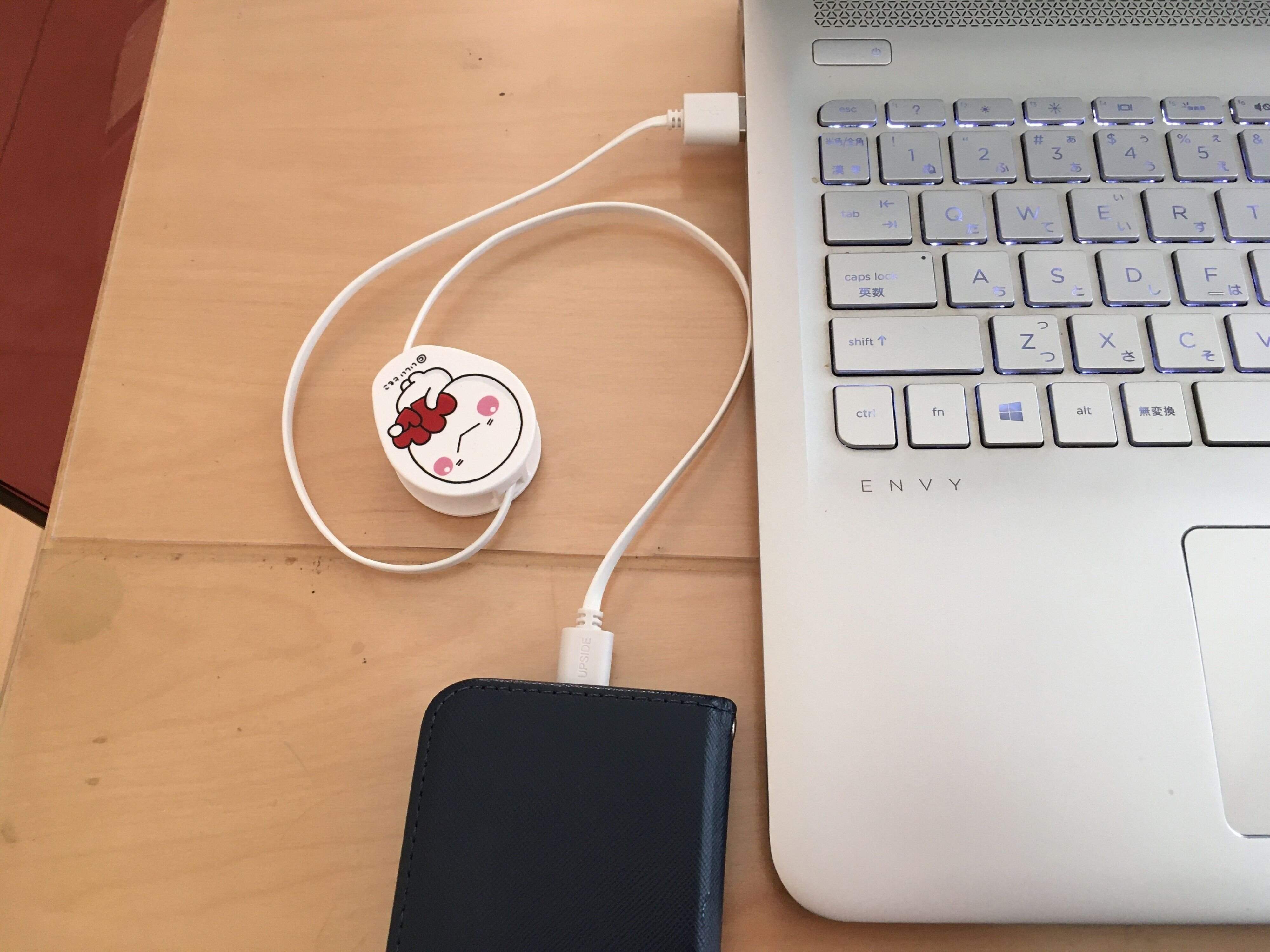 かわいいLINEのクリエイターズスタンプのキャラクターに癒されるこちらの充電ケーブル。ちなみにスタンプのキャラクターはこの「しろまる」のほかに「ゆるうさぎ」「ひとえうさぎ」「テンプラニンジャ&サムライ」の3種類があるようです。