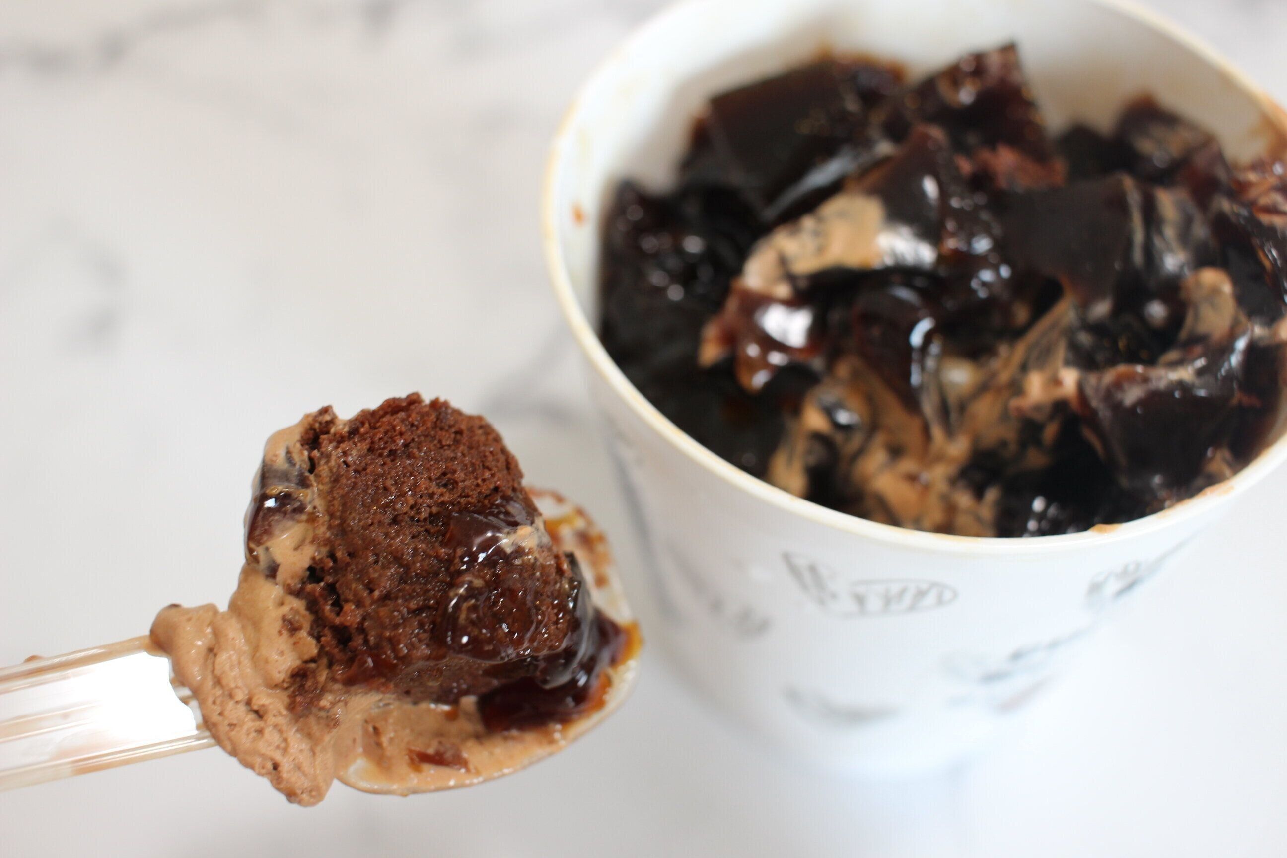 今回の「珈琲ショコラ」は、ブラジル産アラビカ種を使用したコーヒー入りのゼリーに、ショコラクリーム、チョコブラウニーが入っています。