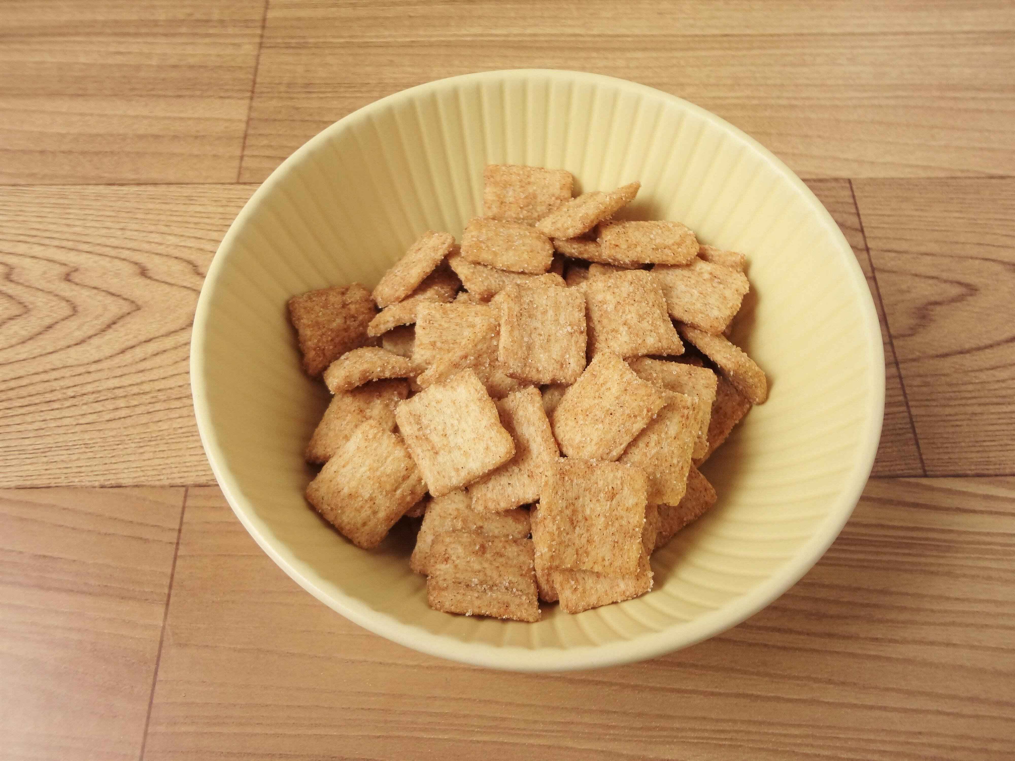 こちらも堅さは固めなので、食感は軽いですが食べ応えがあります。このまま食べてもいいですが、シナモンの香りが強く甘さもあるので牛乳をかけるのがおすすめです。