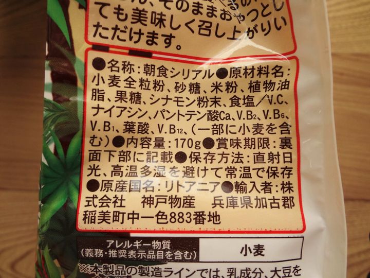 リトアニアからの輸入食品で、赤いパッケージに可愛いイラストが目にとまります。パッケージは日本のシリアルの半分くらいの大きさで、コンパクトになっています。