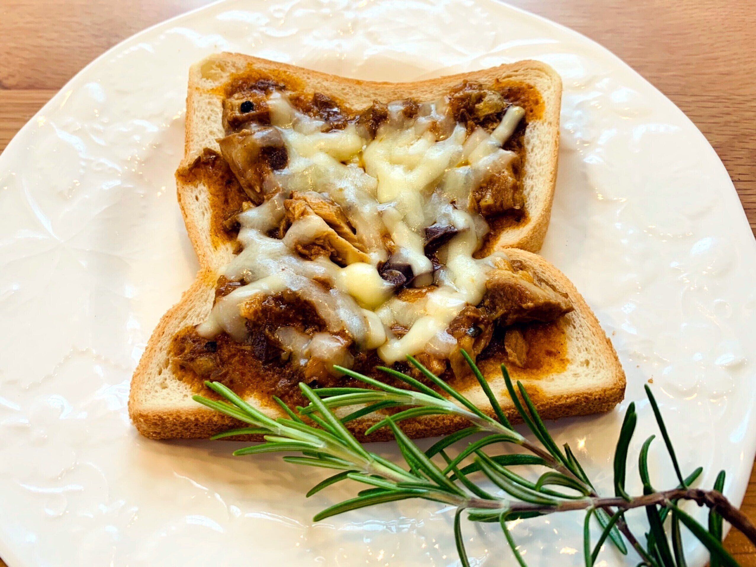 食パンにさばカレーをのせて、チーズものせてトーストします。