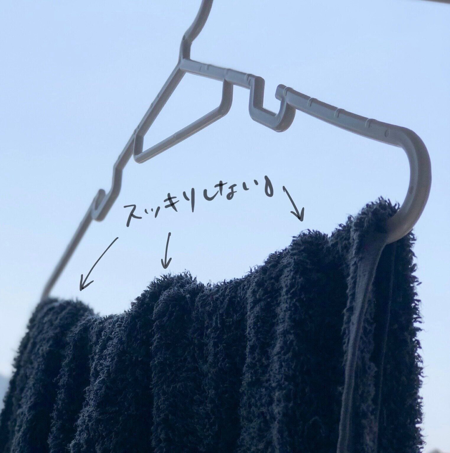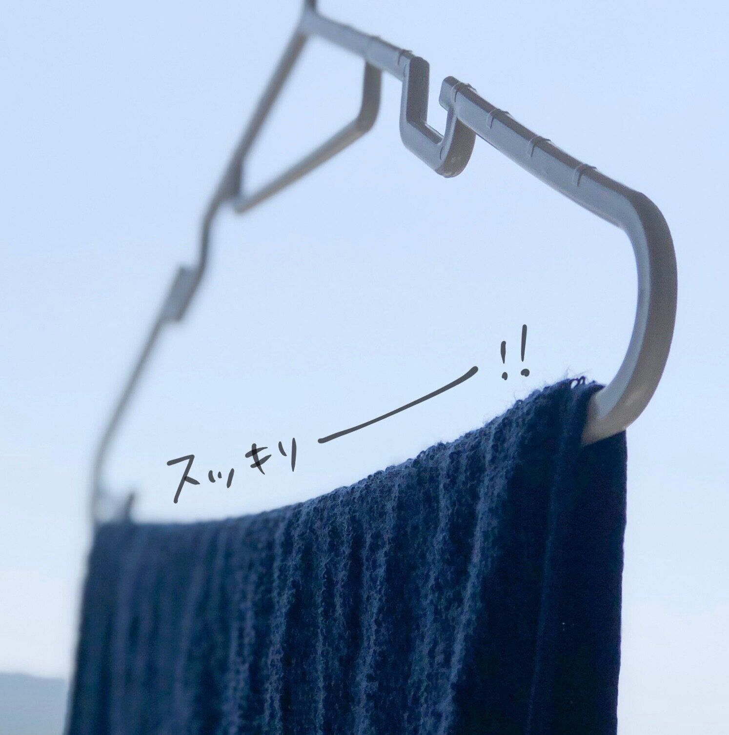 我が家はハンガー干しですが、バスタオルだとまず重い。さらにハンガーだと、どーしてもシワができちゃう。時には取り込むタイミングによってバスタオルだけ生乾きで残念な気持ちになっていました。