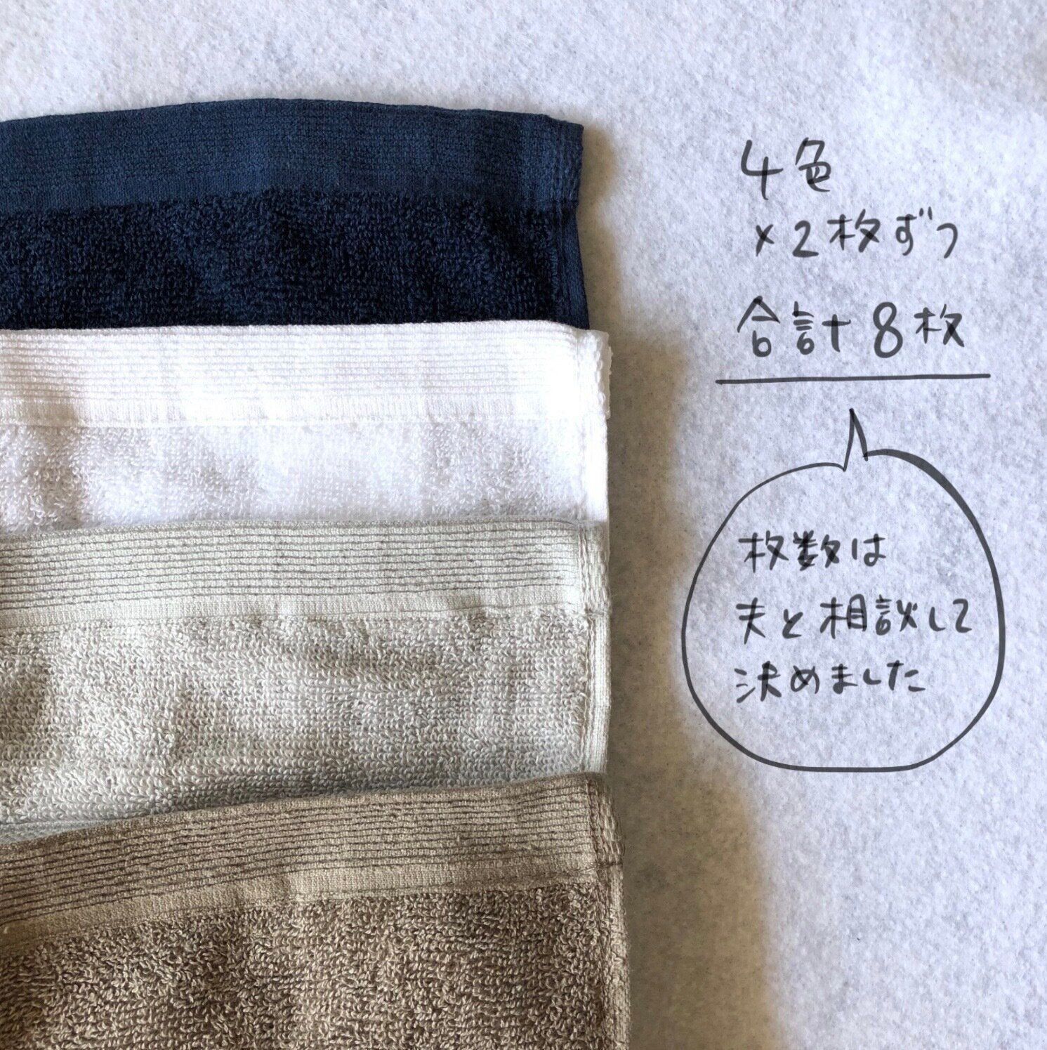 バスタオルの時は2人で1枚のバスタオルを使ってたので6枚でした。