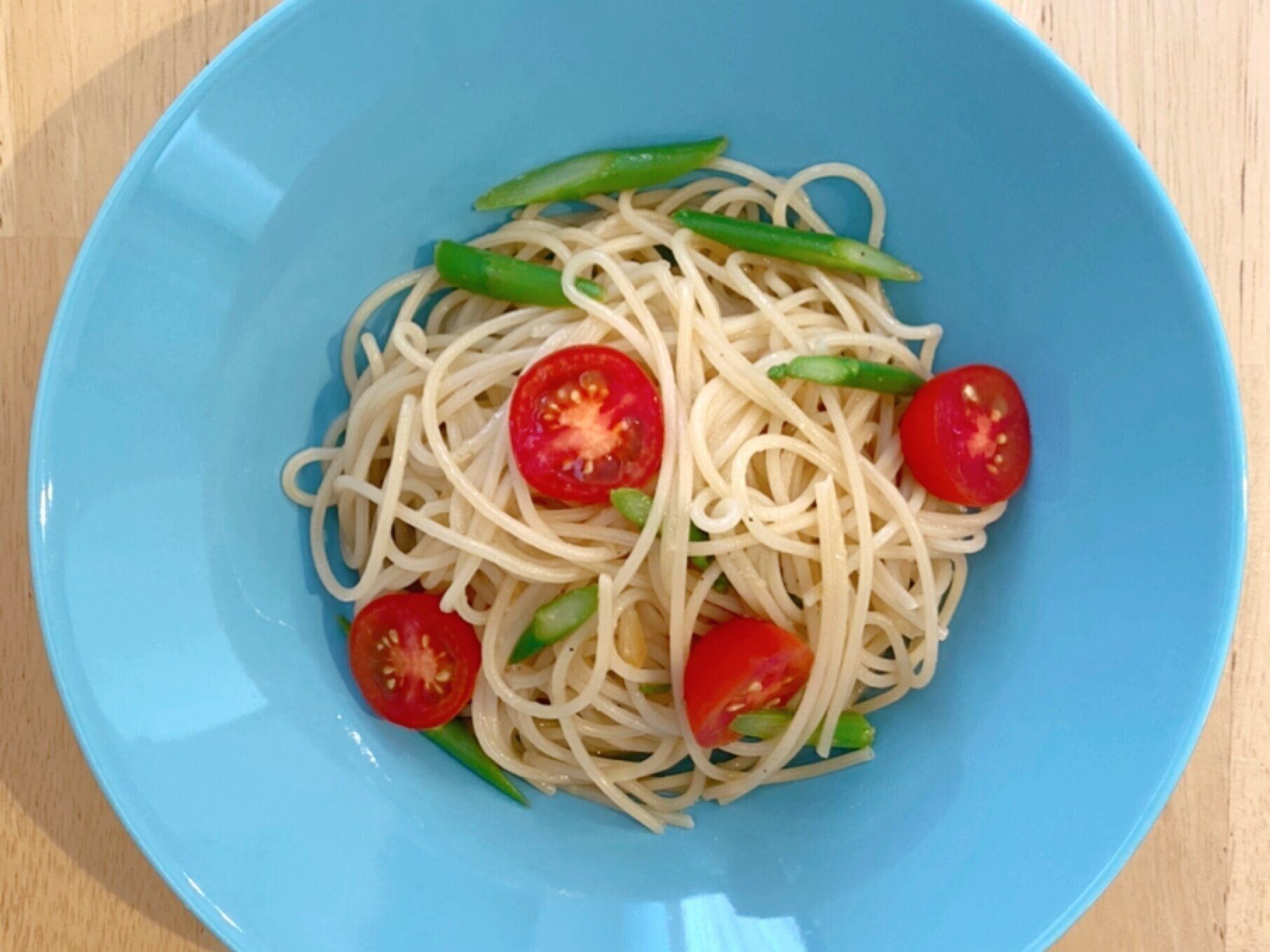 プチトマトとアスパラを入れても、トータルで約300kcalなんです!