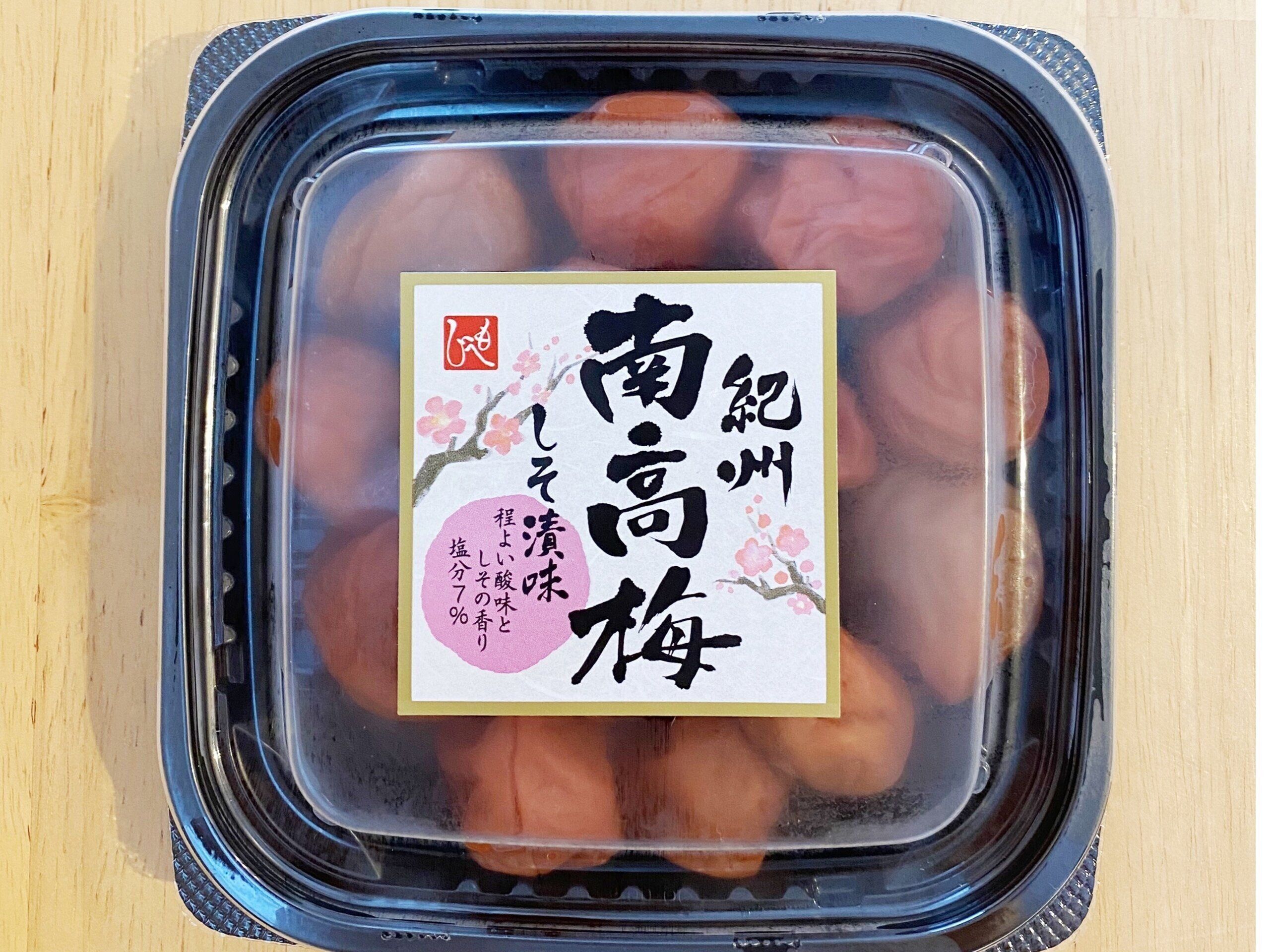 和歌山県産の南高梅を、ほどよい酸味としその香りに味つけした梅干しです。