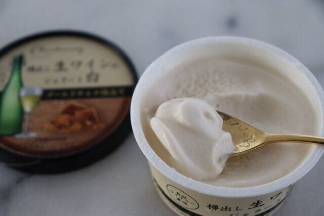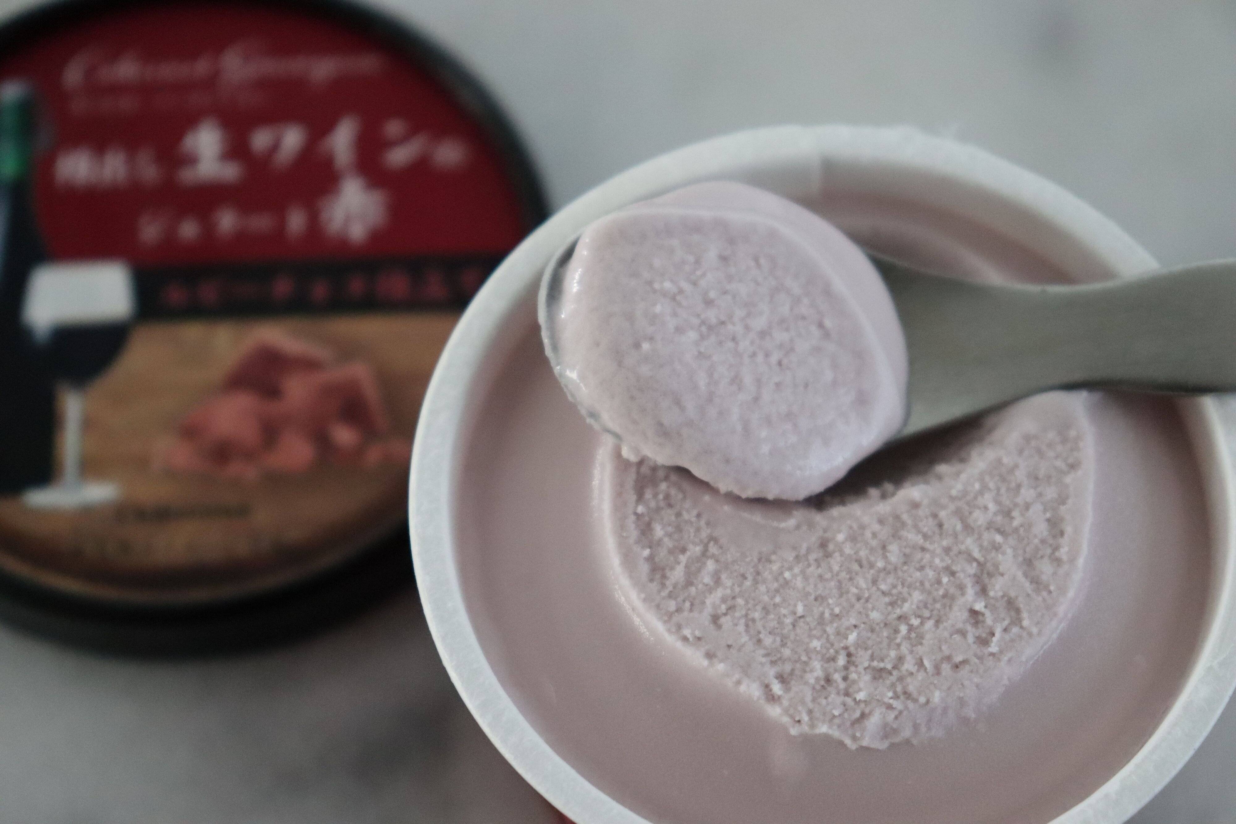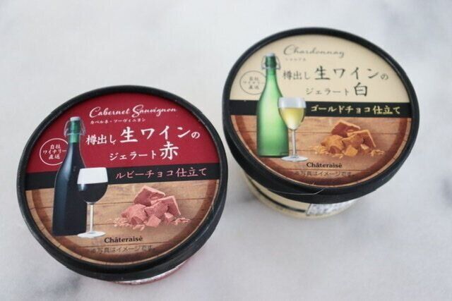 「樽出し生ワインのジェラート」は本物のワインと同じように赤と白が用意されています。価格はどちらも151円(税込)。それぞれの味わいについて、ご紹介していきます。