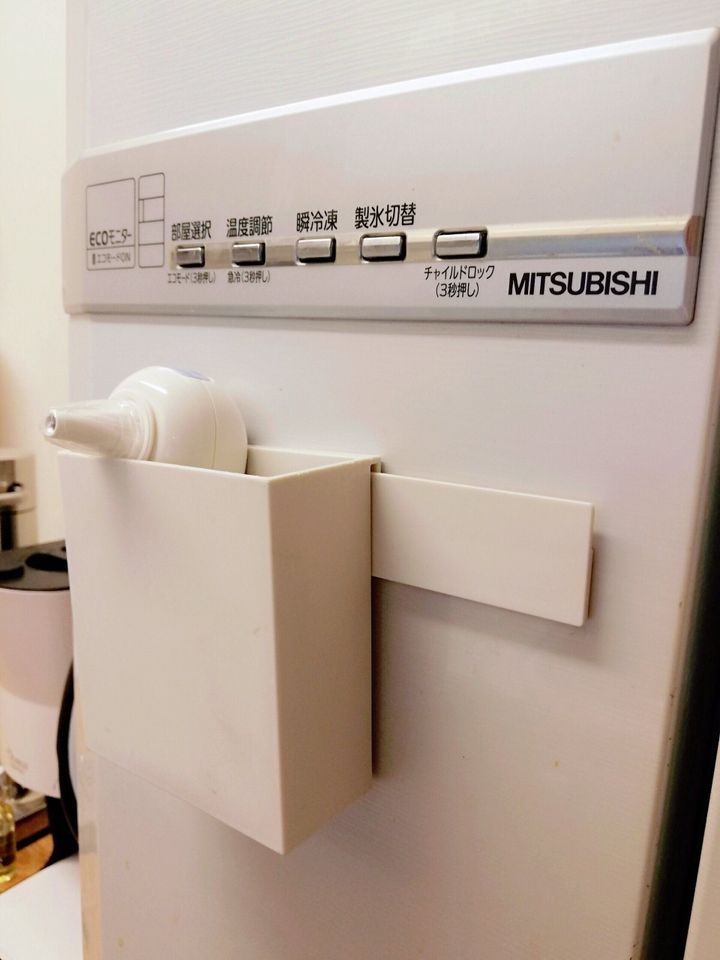 毎日使う物なので、すぐとれるように無印良品のマグネットバー×ファイルボックス用・ポケットに収納しました。