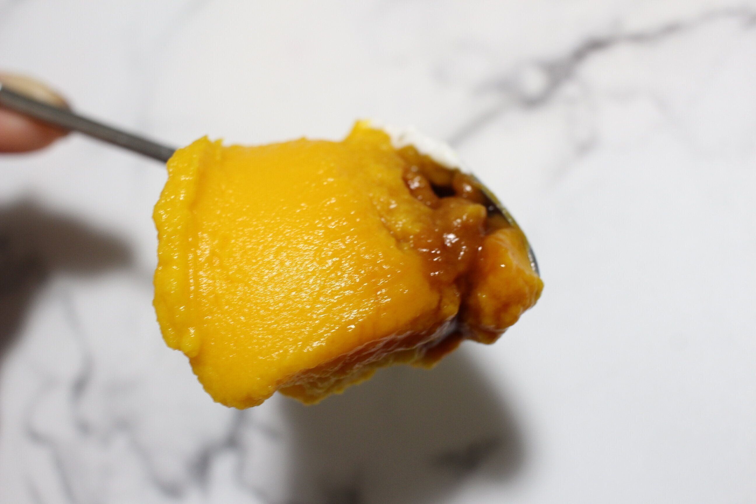 かぼちゃプリンの表面はすこしザラザラしているように感じますが、気になるほどではありません。