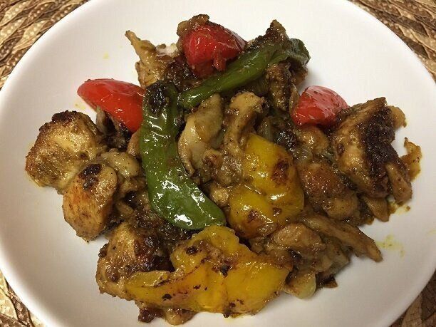 コストコで人気のさくらどり使用でスパイスの効いたカレーの味つけがしっかりついていて、パプリカやししとう、玉ねぎなどカラフルな野菜もたっぷり。