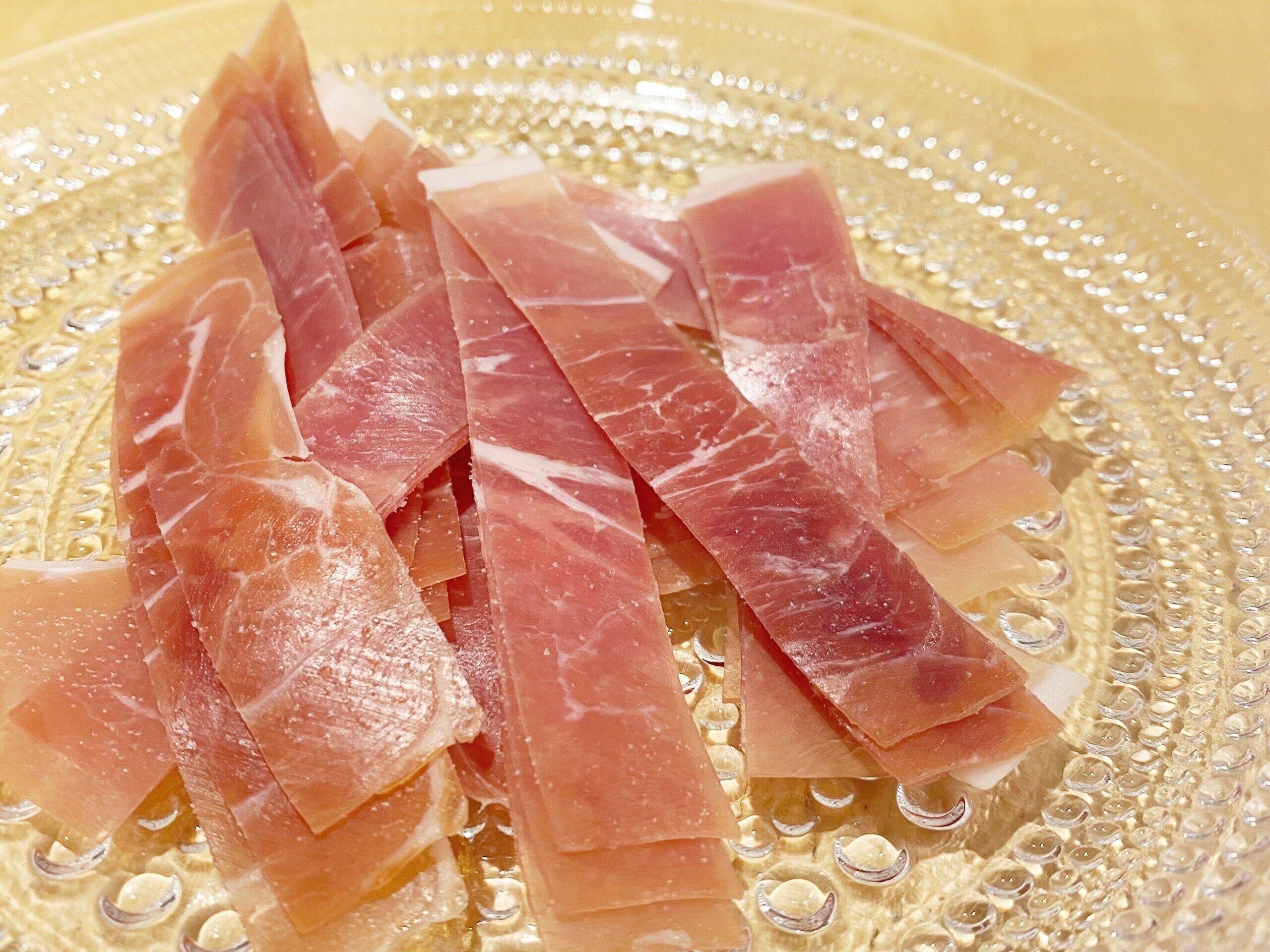 240日以上乾燥・熟成したプロシュートの切り落とし。少量の食べきりサイズになっています。
