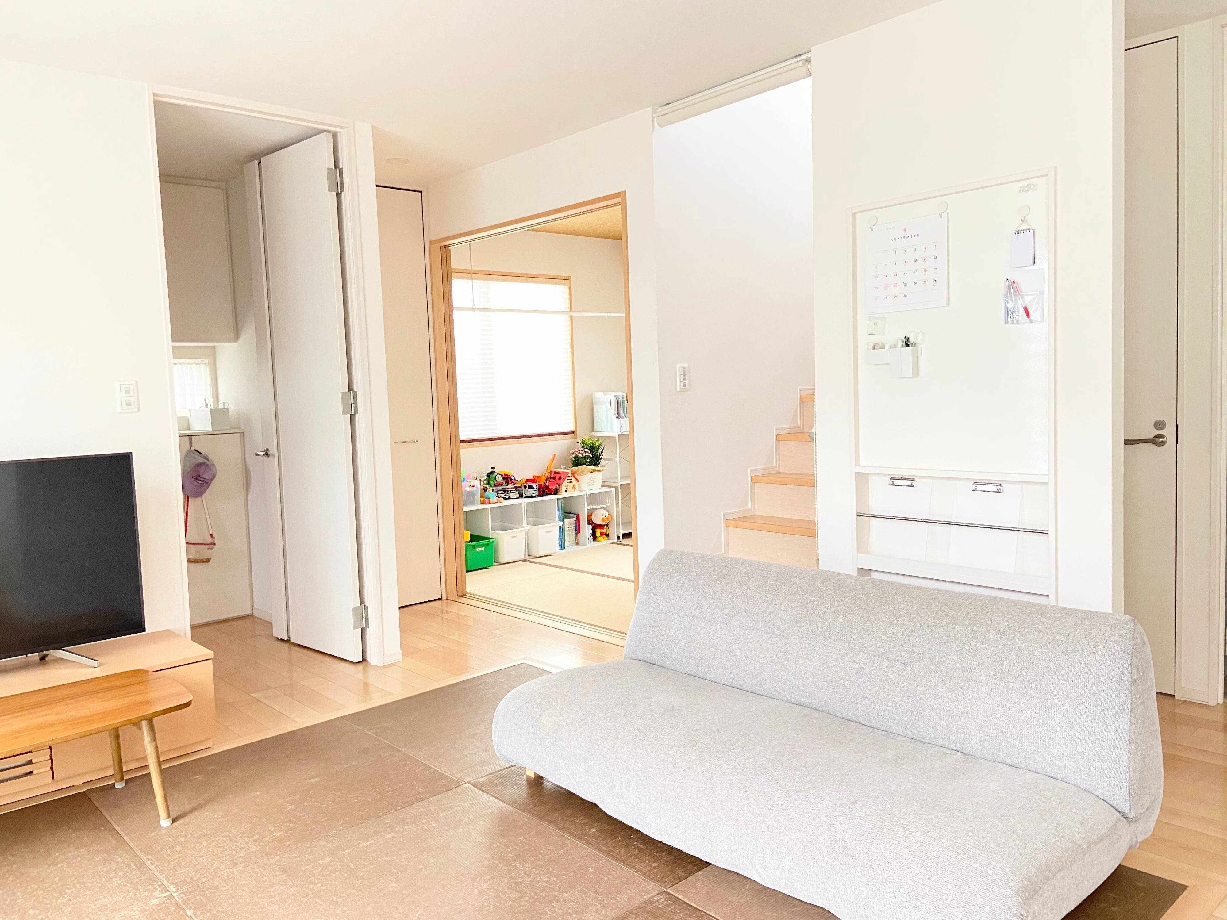 インテリア性とちょっと転がるときに便利と思って最近まで3つクッションを置いていたのですが、クッションは子どもたちによっていつの間にか下に落ちていることが多々。ソファの上には何もないほうが汚れモノも減るし、掃除するのも簡単だと気づき、最近撤去したら、拭き掃除がしやすくなりました!