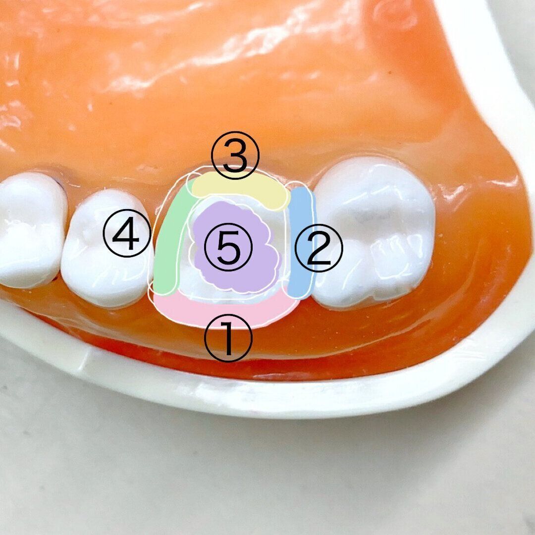 裏表磨かないといけないことを知っている方は多いのですが、実は歯は一本あたり5面お掃除しなければならないところがあります。