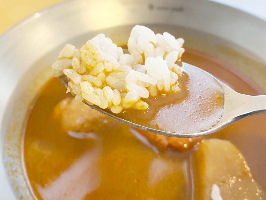 鶏肉は若干のパサつきがありますが、ホロホロとほぐれる柔らかさ!野菜は舌でつぶせる程なめらかな食感です。