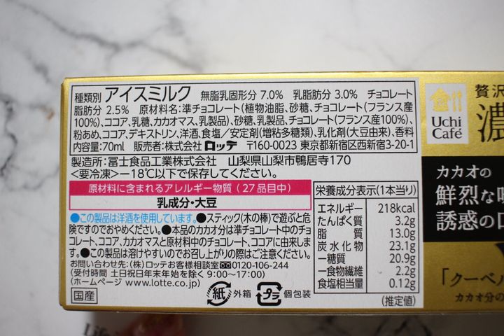 濃密チョコレートなだけにきっとカロリーはすごい高いんでしょう…と恐る恐る見てみると1個あたり218kcalと思ったより低くて思わず2度見しちゃいました。
