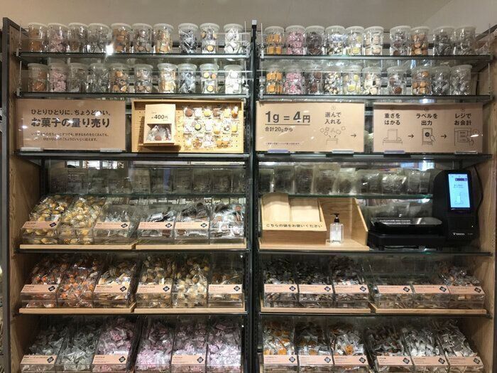 2020年9月16日より一部店舗で始まった無印良品の新サービス!その名も「お菓子の量り売り」です。画像でご覧の通り、たくさんの無印良品のお菓子が手に取れる形で置いてあり、その数全28種類!