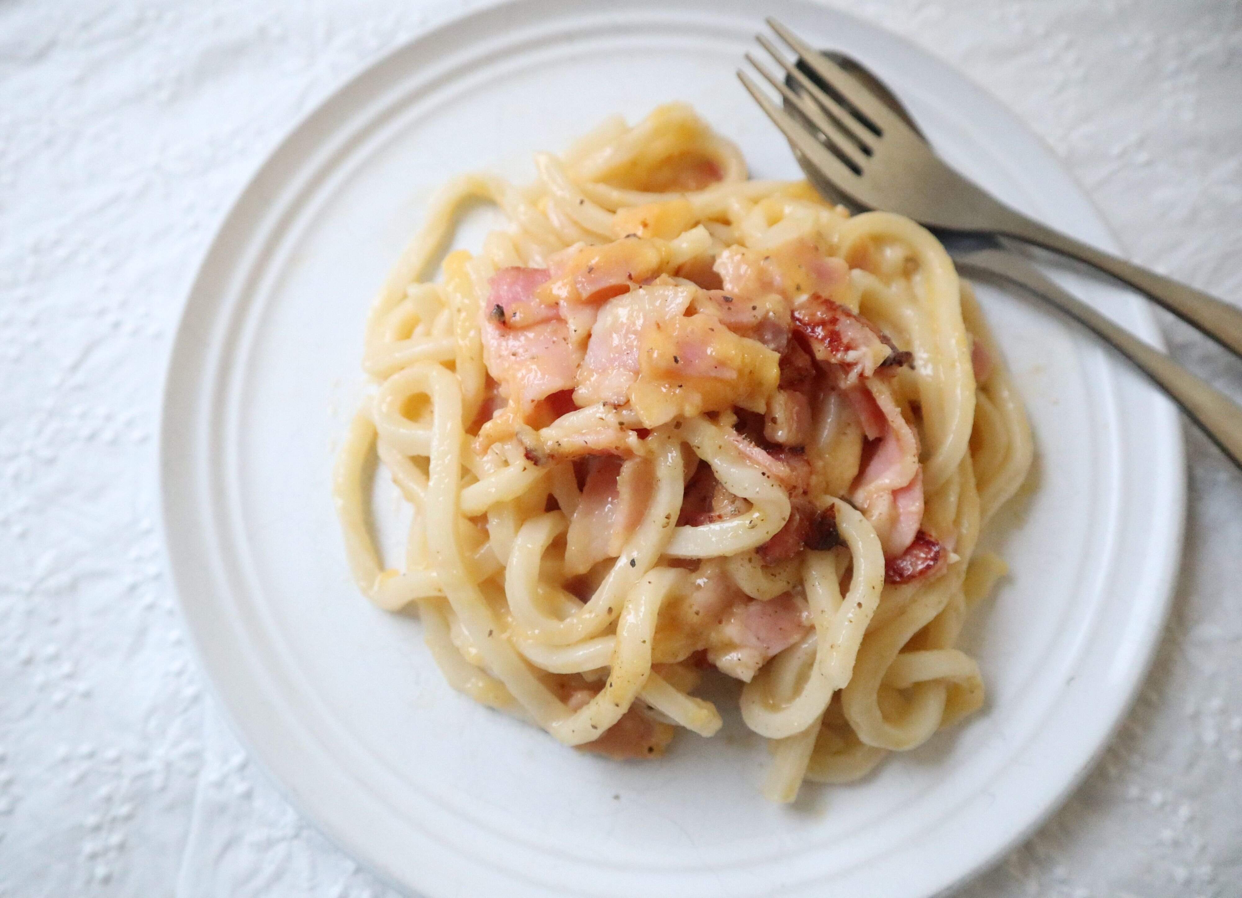 アレンジメニュー1:うどんカルボナーラ