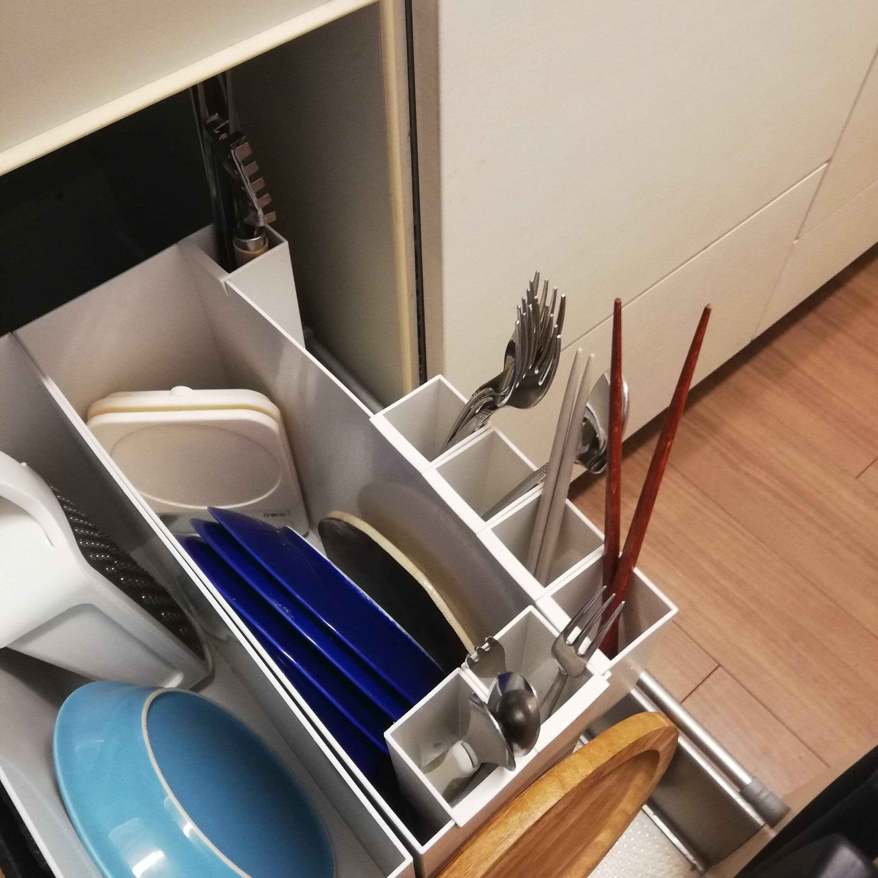 カテゴリ別に分かりやすく分類できるのはもちろん、食洗機の真横に設置しているので、しまう作業もスムーズに行えます。