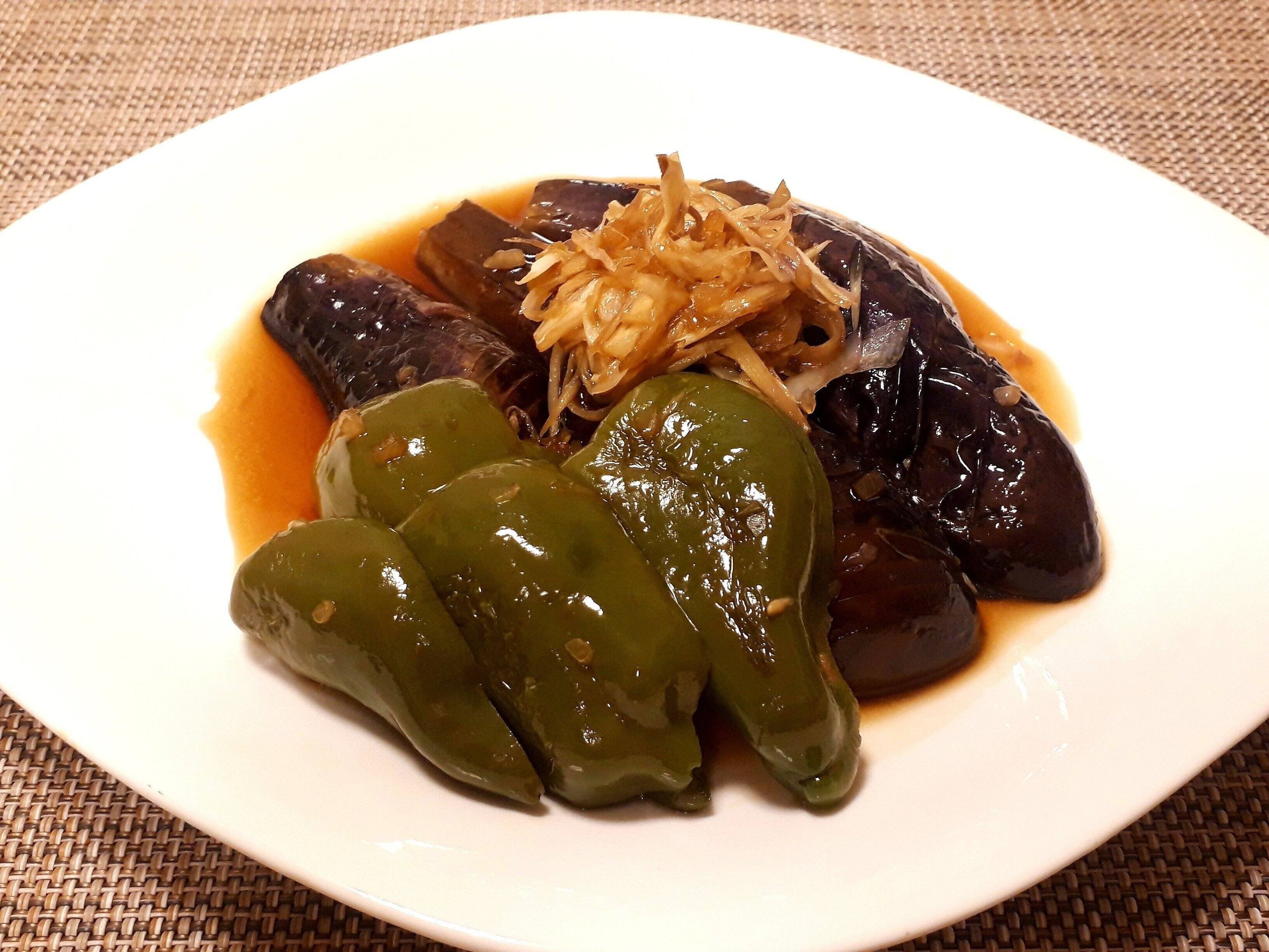 こちらは、ナスとピーマンの焼きびたしに「きざみらっきょうの甘酢だれ」をちょいたししたものです。私はナスやピーマンの焼きびたしをつくるときは、めんつゆにおろし生姜を入れて浸すのですが、これに「きざみらっきょうの甘酢だれ」をちょいたしすると、ほどよい酸味と甘みが加わりよりおいしくなりました。