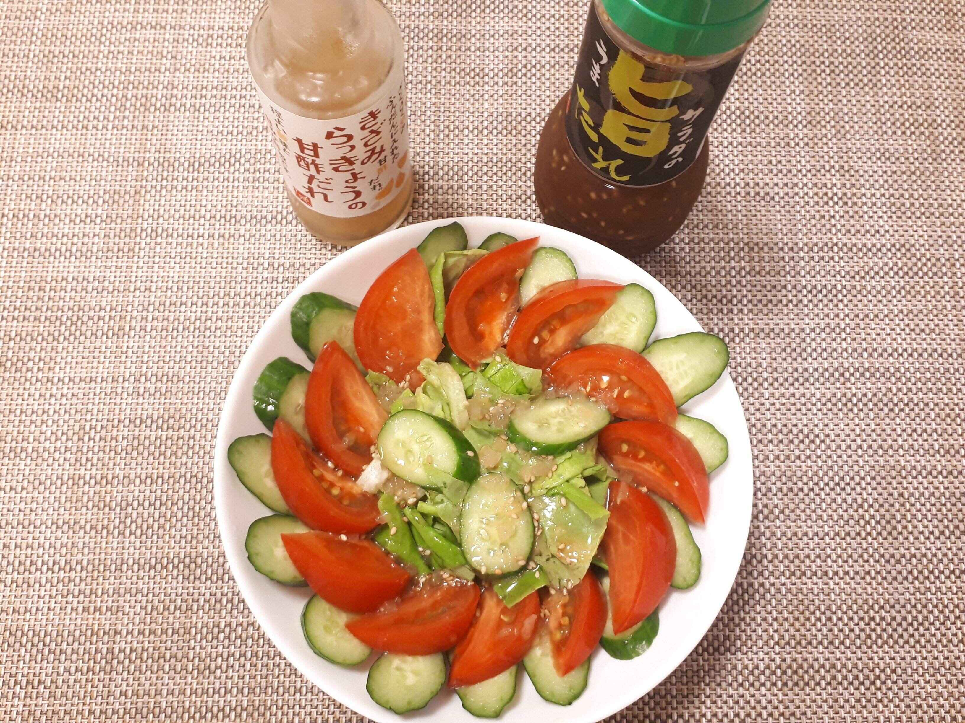 私は、サラダの旨たれ:きざみらっきょうの甘酢だれの比率が2:1程度が好みですが、配合はお好みに応じて調整してみてください。