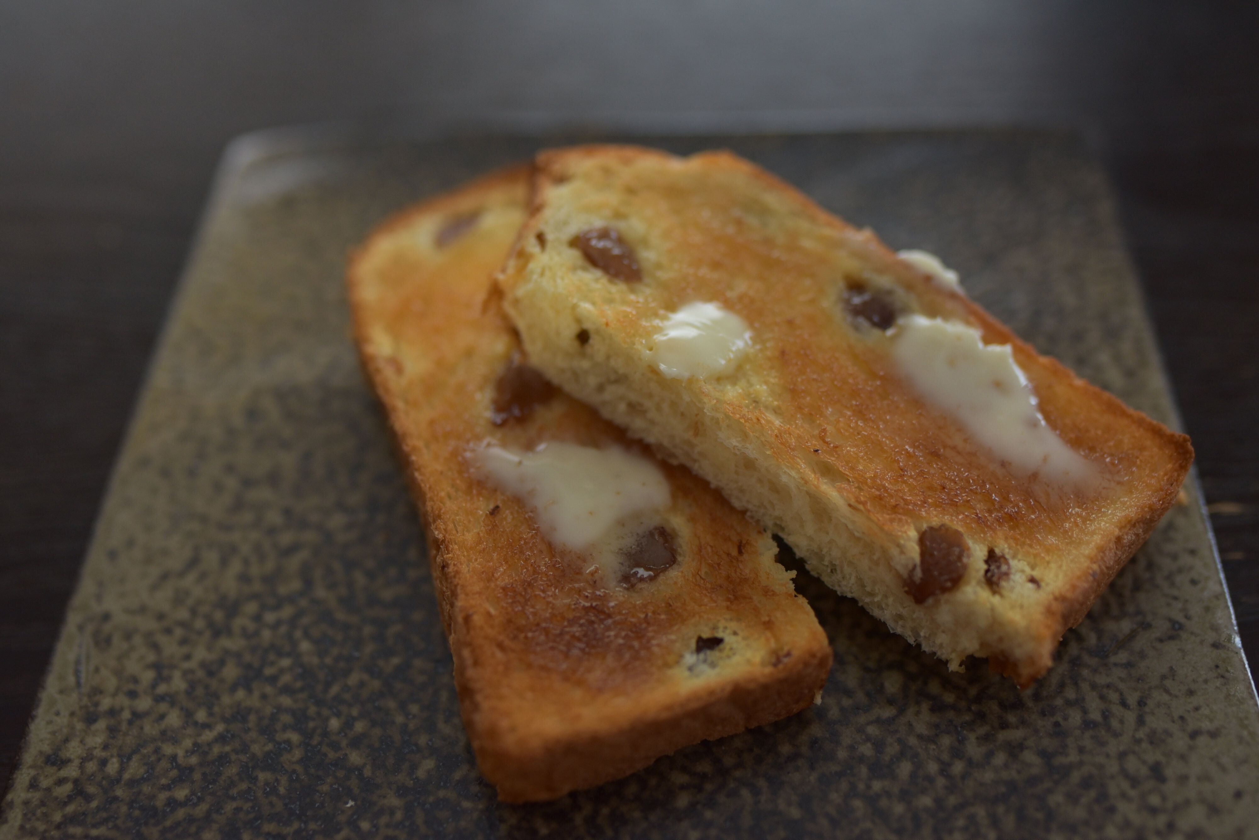 そのまま食べてももちろんおいしいのですが、トースターで焼いてバターをつけて食べるのもおすすめです。レーズンとバターの相性は、やっぱりいいですね。パッケージのデザインが素敵なので、ちょっとした手土産にも喜ばれそうです。