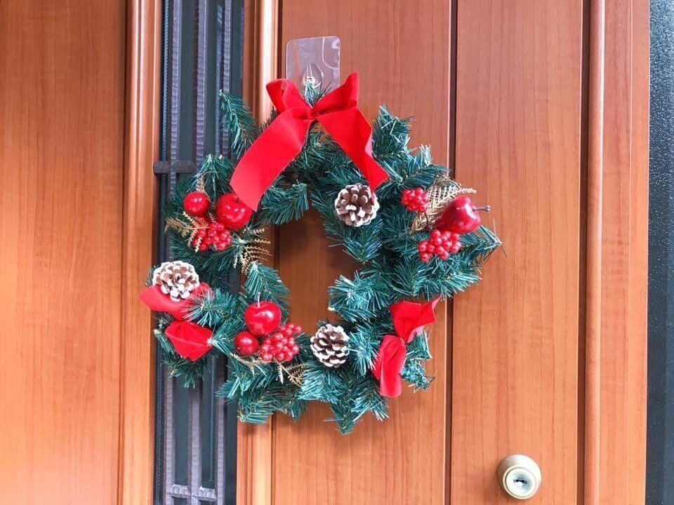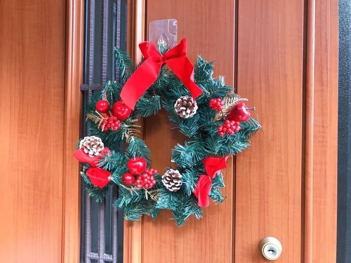 耐荷重は約1.5kgだから、大きなクリスマスリースも吊るせます。これなら玄関ドアに傷をつけずに取りつけられますね。
