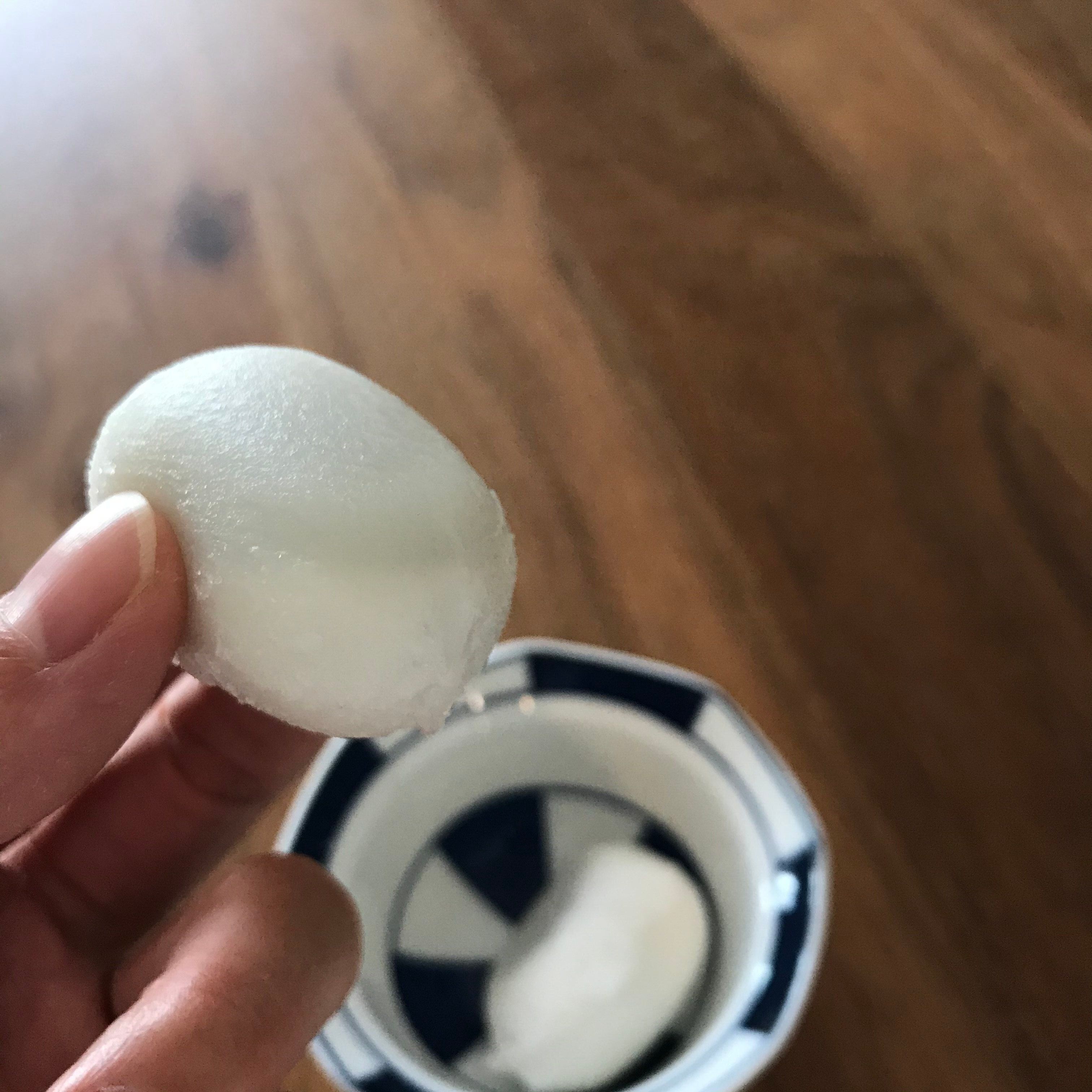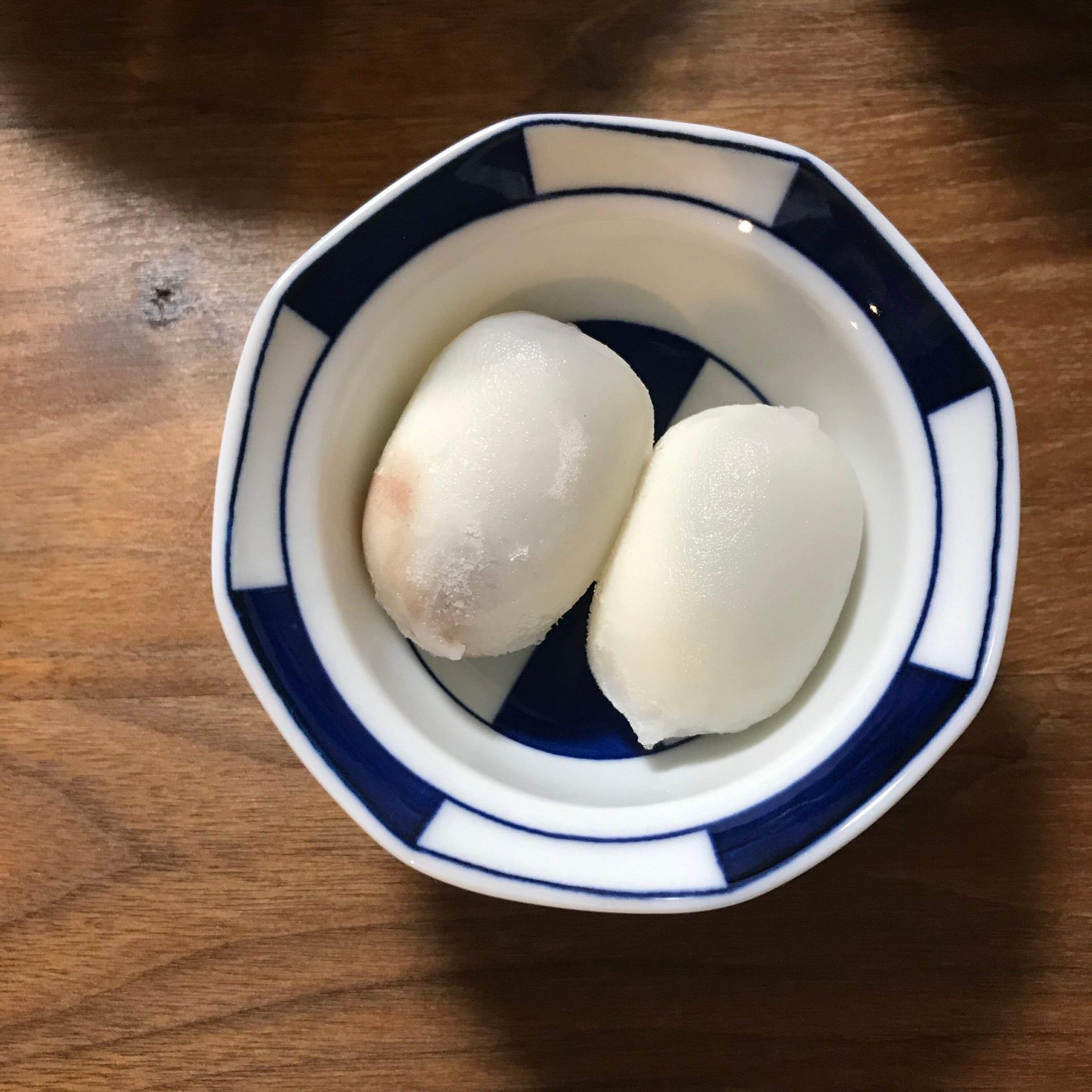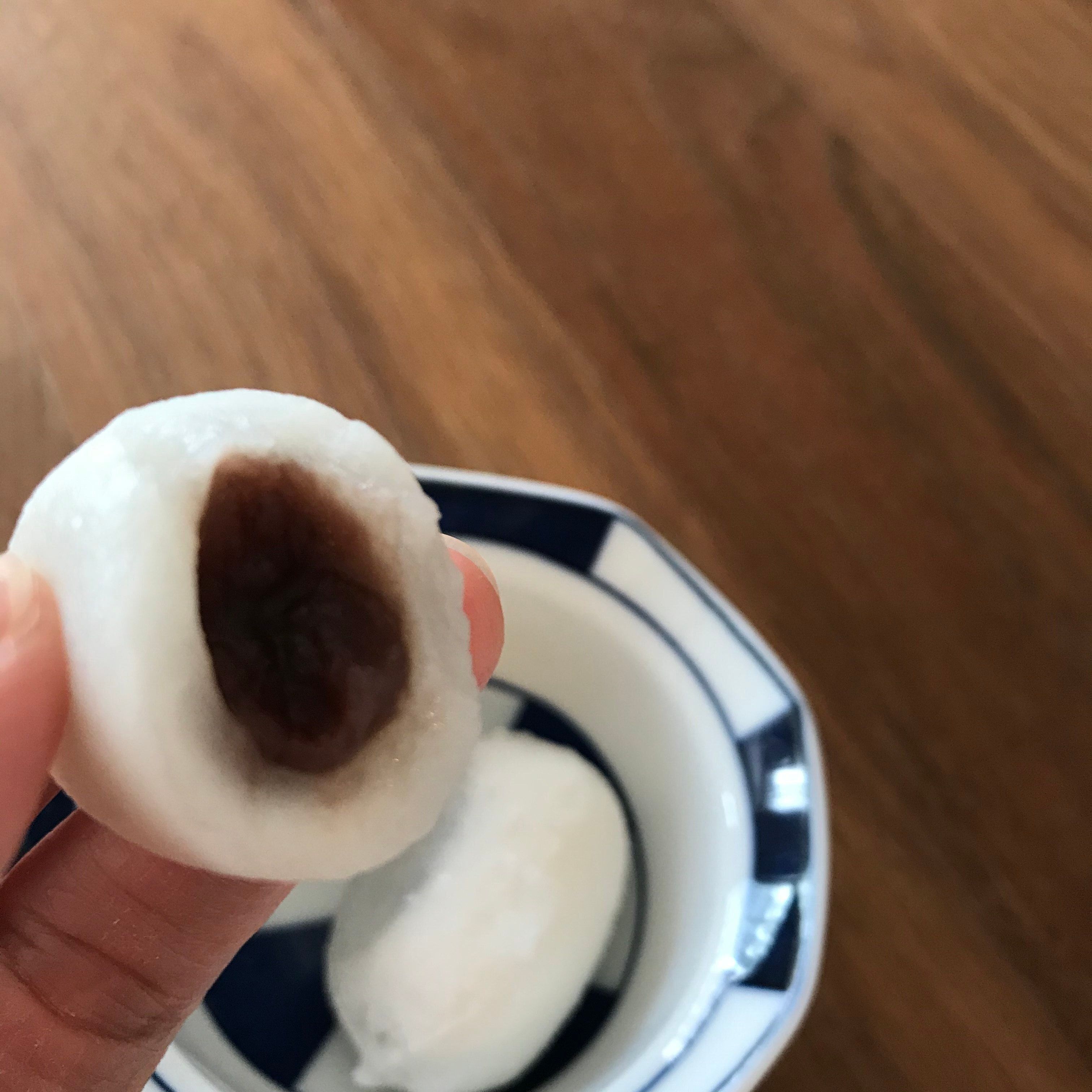 もちっと柔らかいです。中身はパッケージのように真ん丸ではないのがほんの少し残念なポイントかなぁ。