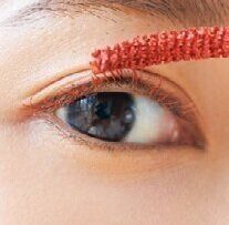 眉は悪目立ちしないよう、ペンシルでたりない所を埋める程度に。さらに明るめカラーの眉マスカラで立体感を出すとあか抜けた印象に。