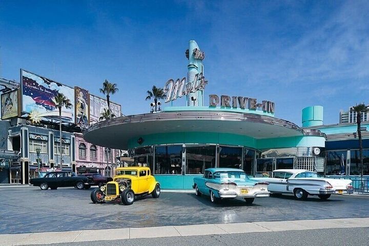 レストラン前に置かれているのは、ジョージ・ルーカス監督が製作した映画「アメリカン・グラフィティ」に登場した物と同種のクラシックカー。博物館に展示されるレベルのお宝!!
