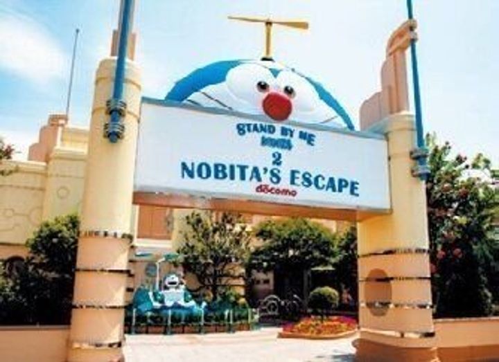 タケコプターをつけたドラえもんのエントランスは格好の撮影スポット。