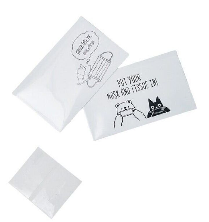 持ち運びにじゃまにならず、外出時のマスクの一時保管に大活躍。シンプルなデザインなので夫用にもよさそう。¥100/Can ★ Do