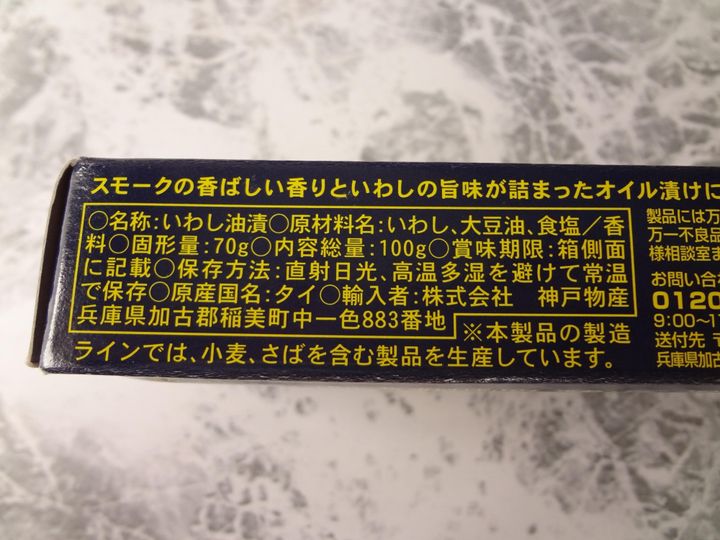 青いパッケージのオイルサーディン。こちらもタイからの直輸入で、スモークテイストなので香りがとてもいいです。
