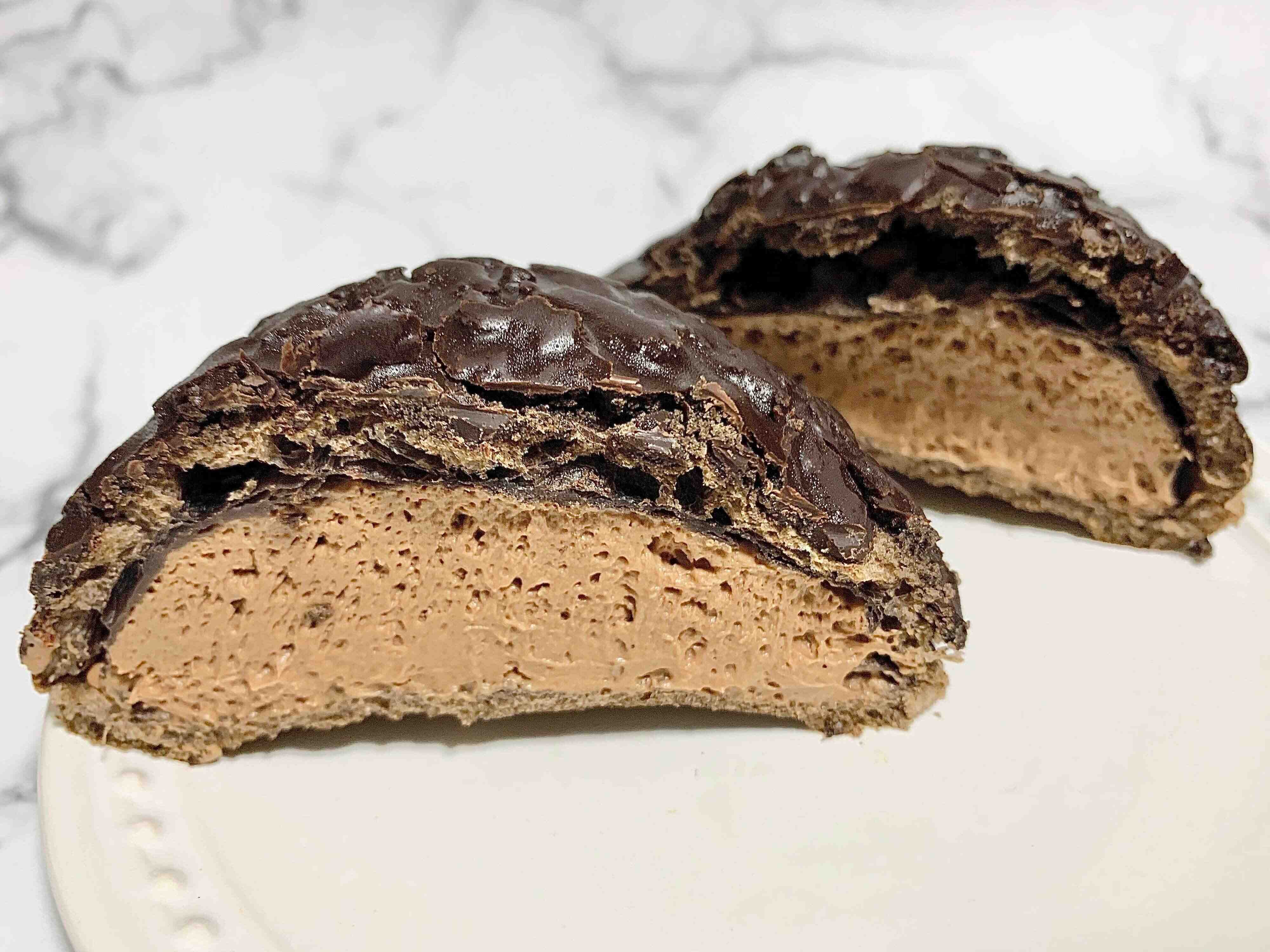 チョコクリームがかかってない下の生地はパサパサ感が否めないですが、分厚いチョココーティングとたっぷりのチョコクリームのおかげでほとんど気になりません。甘そうな見た目ですが、チョコクリームがビターで甘すぎないので食べやすかったです。