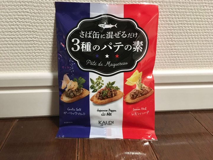 今回のカルディパトロールで見つけたのは、カラフルなパッケージが目を引く「さば缶に混ぜるだけ 3種のパテの素」。