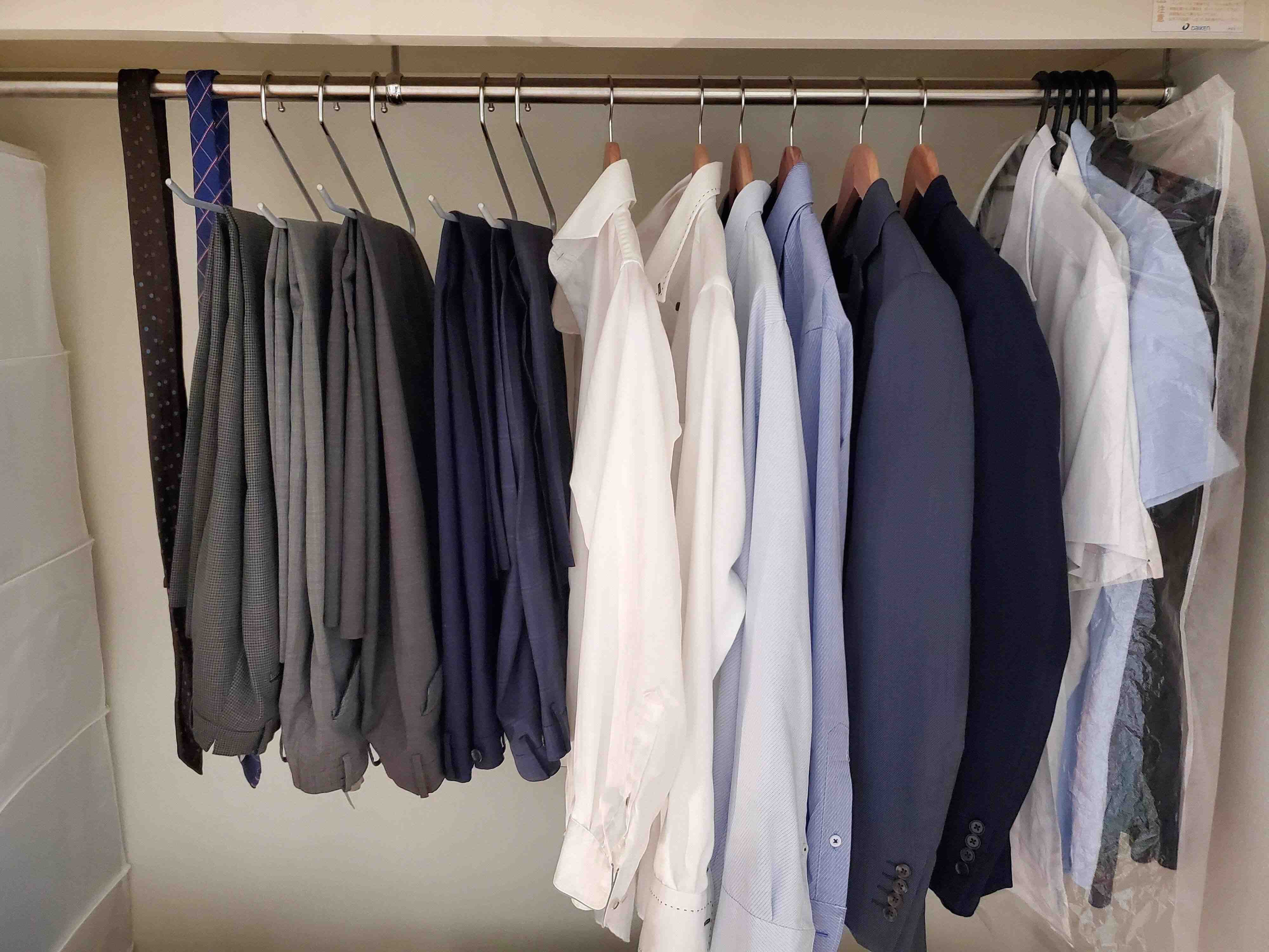 今までジャケット用の大きな幅広ハンガーを使っていましたが大きくて重たいのか、夫はそれにもどすことがないときも多々ありました。(適当にその辺にある黒いプラハンガーにジャケットをかけたり…)