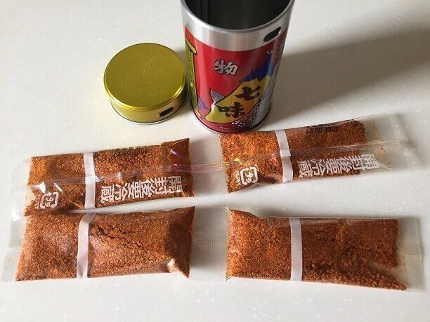 缶をあけると七味が小分けで袋に入っています。
