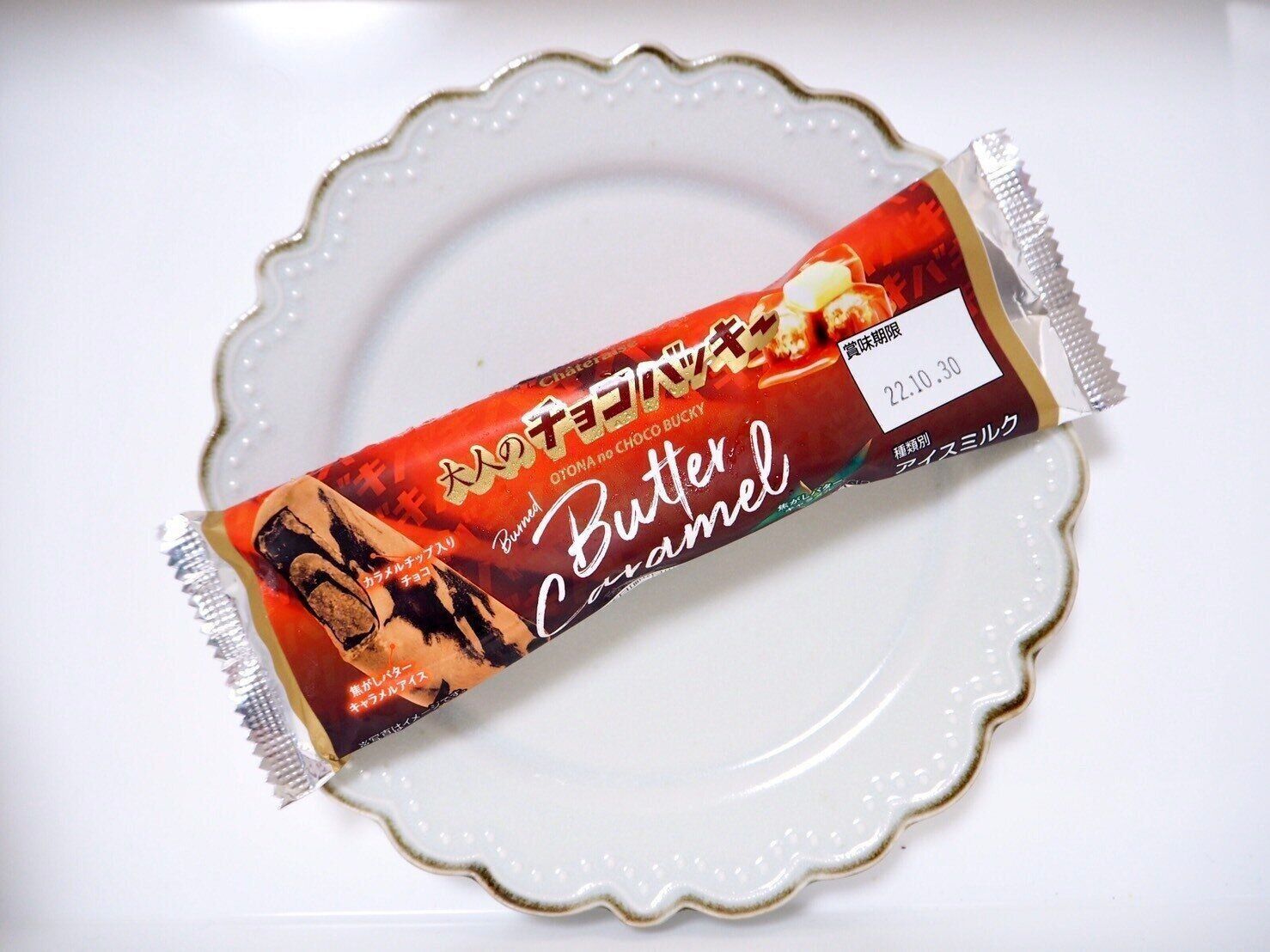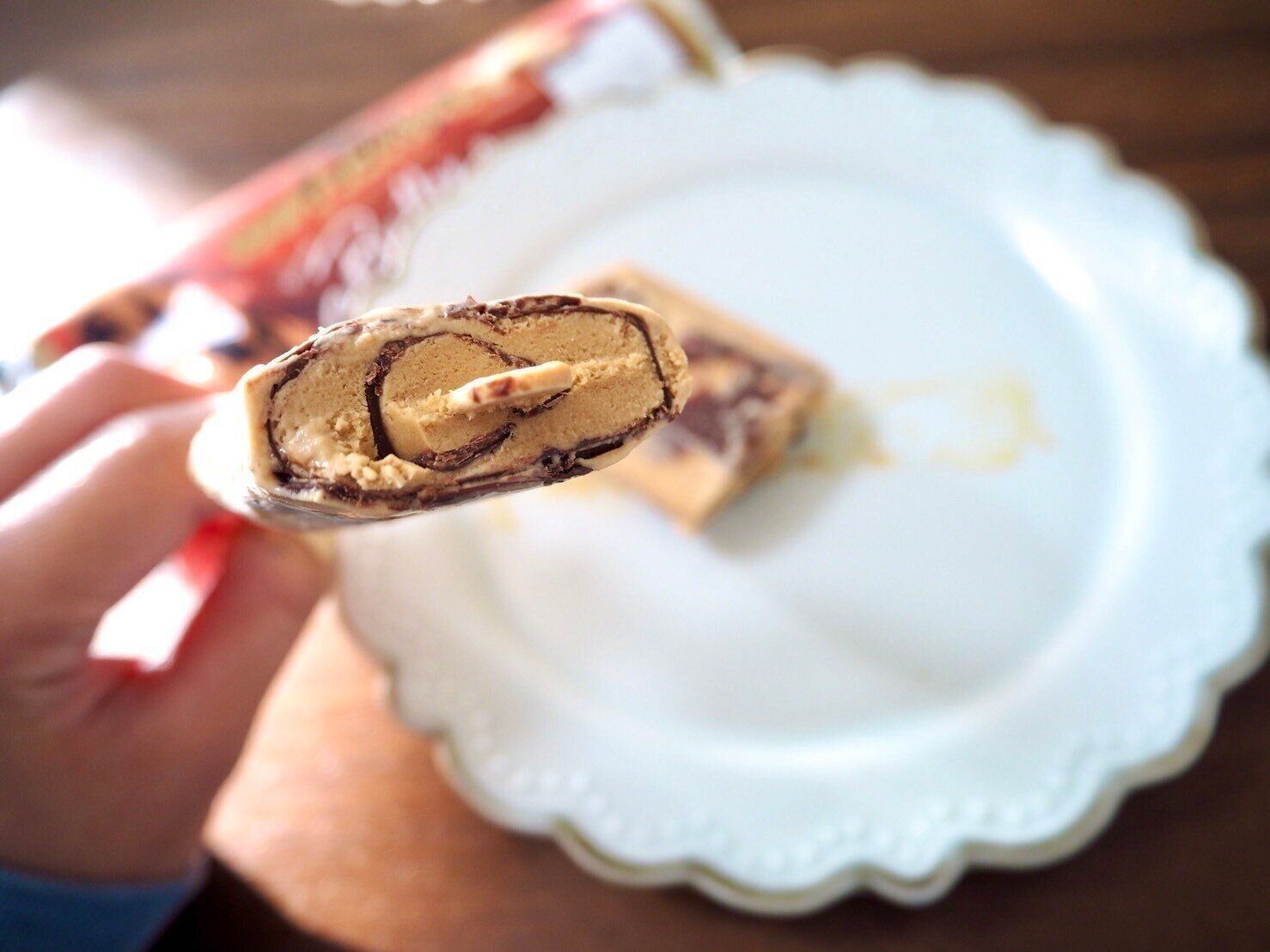 アイス部分は、焦がしバターとローストの2種類のキャラメルを使用しており、そこに口溶けの良いスイートチョコが組み合わせられている・・・この説明書きだけですでに「おいしそう」が止まりません。