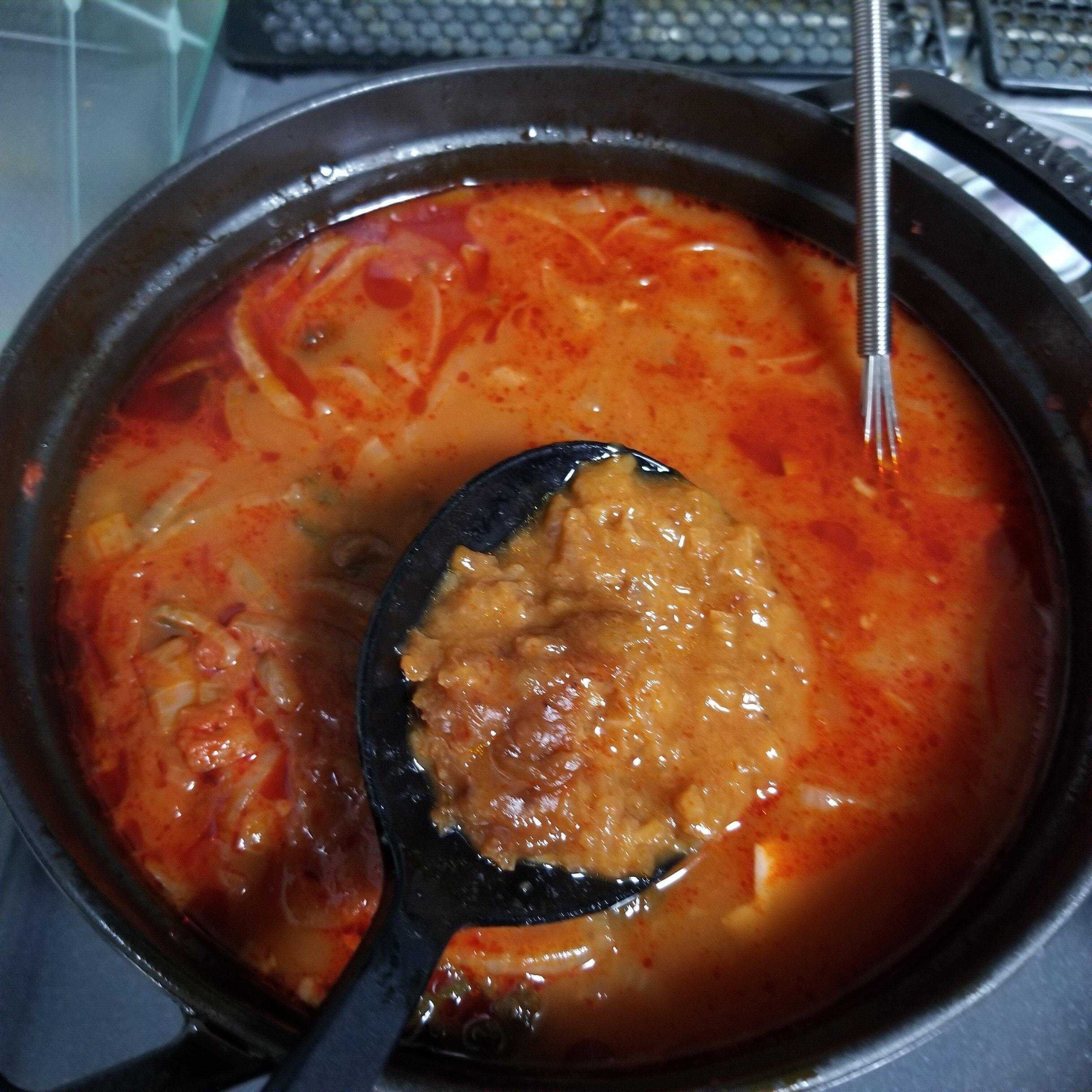 今までは小麦粉とカレー粉を混ぜたものに、お玉で汁を入れて、ミニ泡立て器で混ぜてルーを作り、ゴムベラでお鍋に戻し入れてカレーを仕上げ、お玉で盛りつけをし、ゴムベラでお鍋をこそげてきれいにしていました。