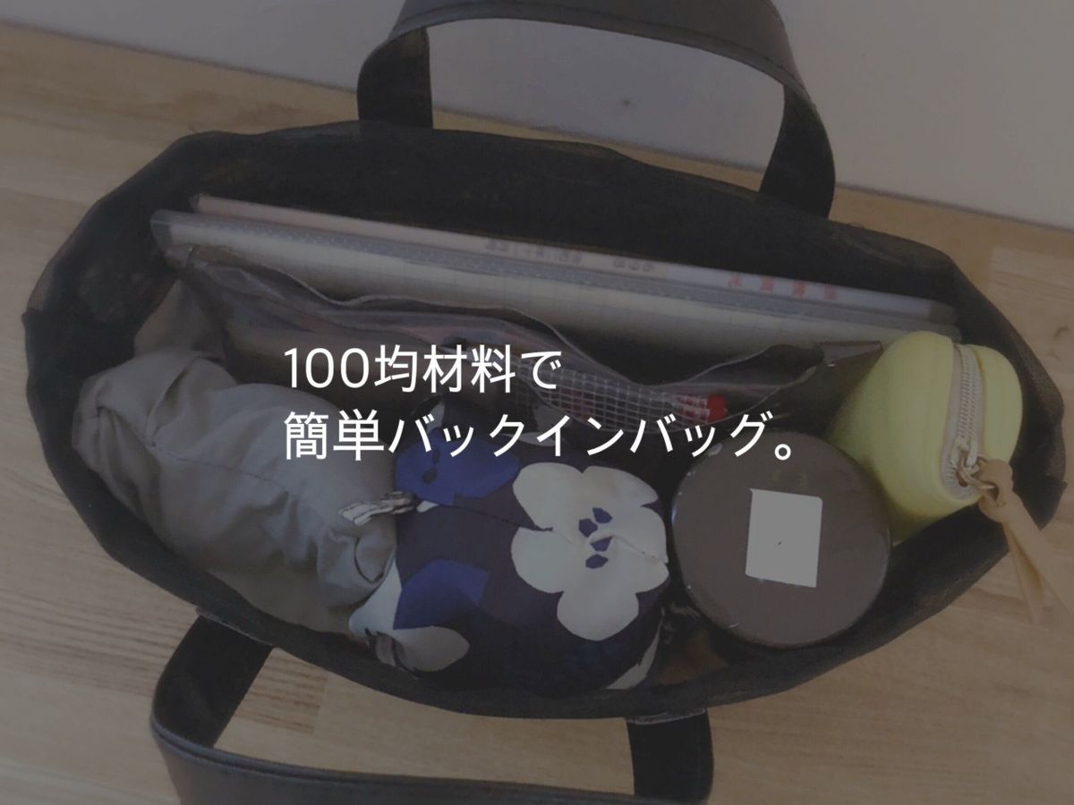 バッグインバッグは今はどこでも購入できますが、意外にシンプルなものは少なく何よりお値段も結構します。なければ自作すればOKですが、一からつくるのは大変です。DAISOの商品でリーズナブルで簡単につくれるので紹介させていただきます。