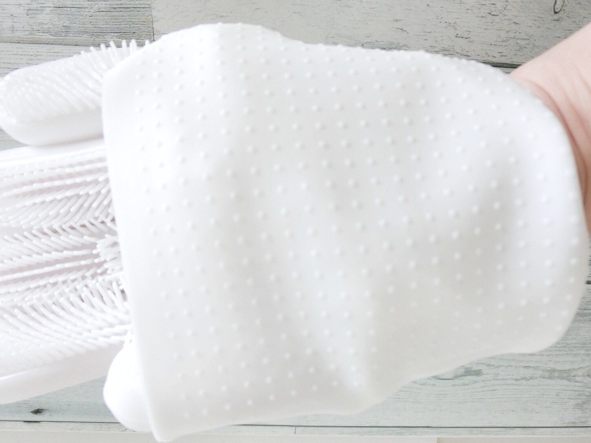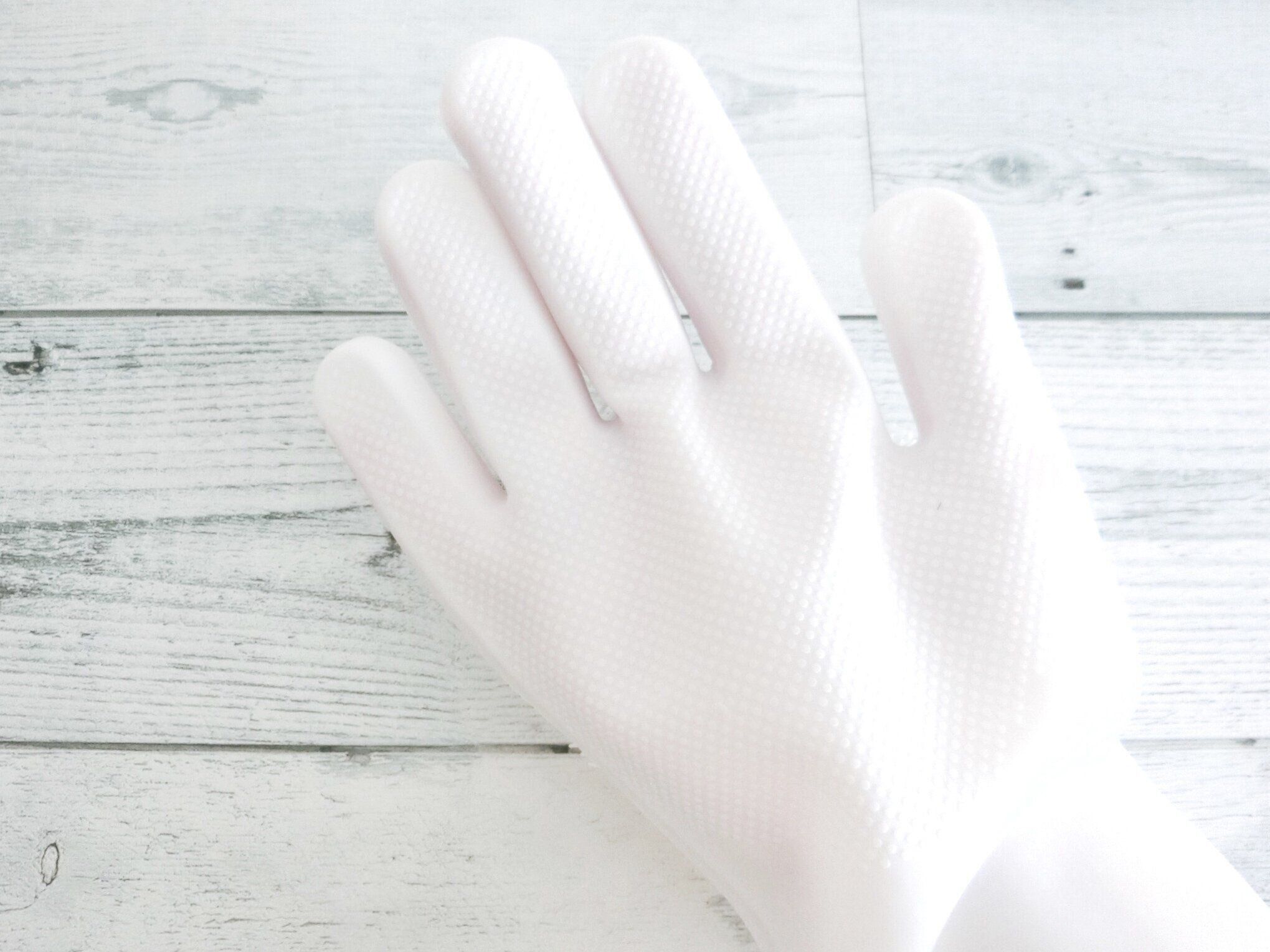 お掃除で手が荒れてしまうのも予防してくれるし、細かいところまでしっかり磨け、スポンジの消費量を減らすこともできて環境にも優しいシリコンブラシ手袋。