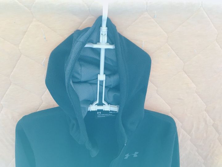 ハンガーの独特な形状がパーカーのフードを広げてくれるので、干すときにも自然と乾きやすい状態になります。