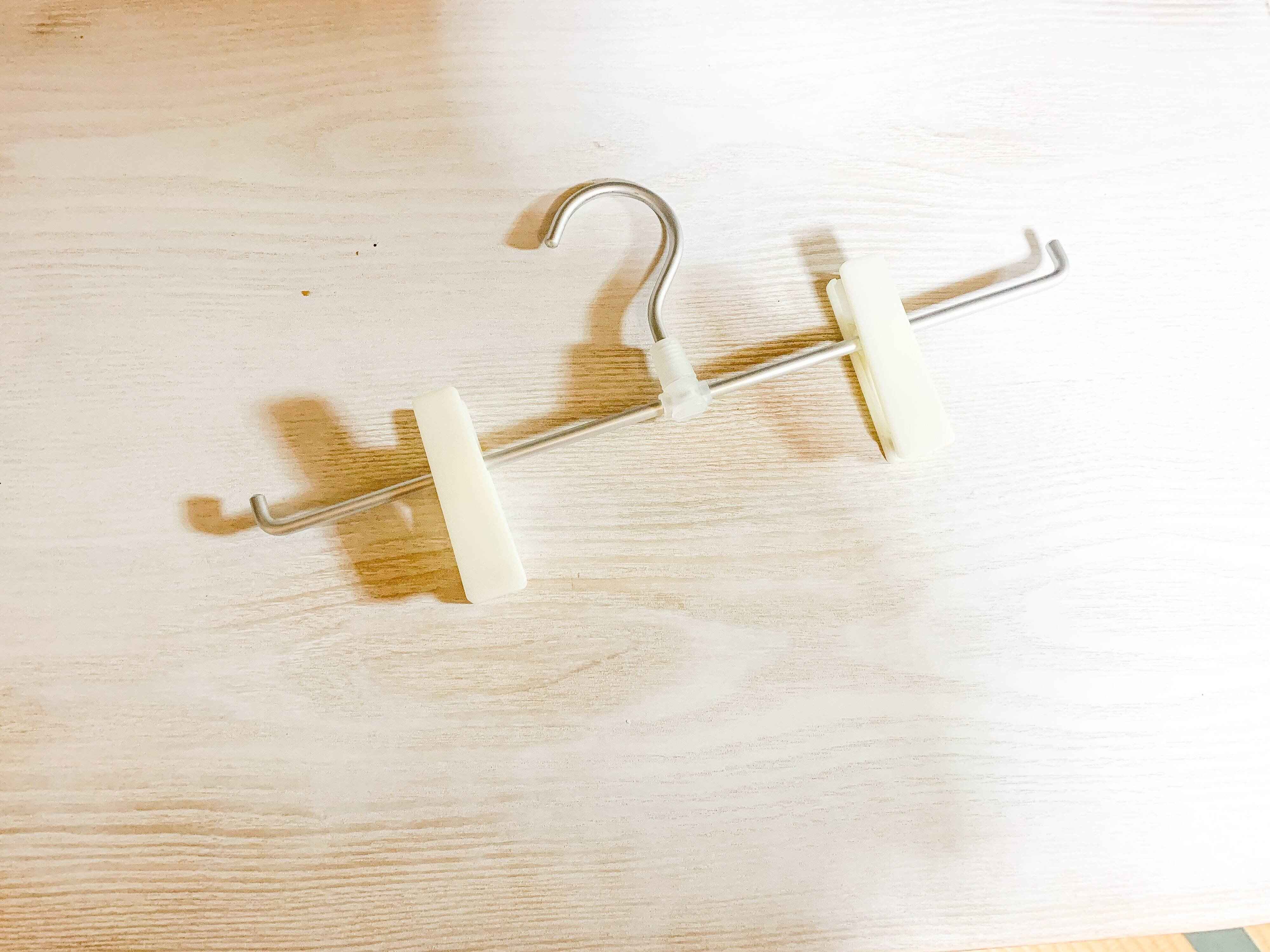 まず、わたしと娘が使っているのは、「ニトリ」の「すべりにくいスラックスハンガー」です。