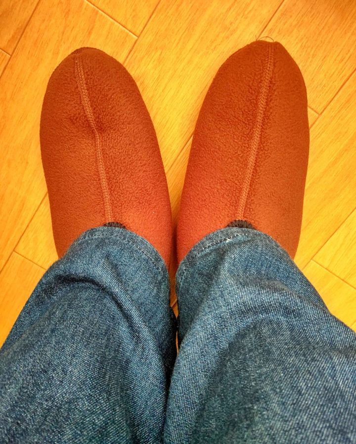 履いてみると、足首まですっぽり包んでくれるので脱げにくく、あったかくて床からの冷えも防いでくれます。