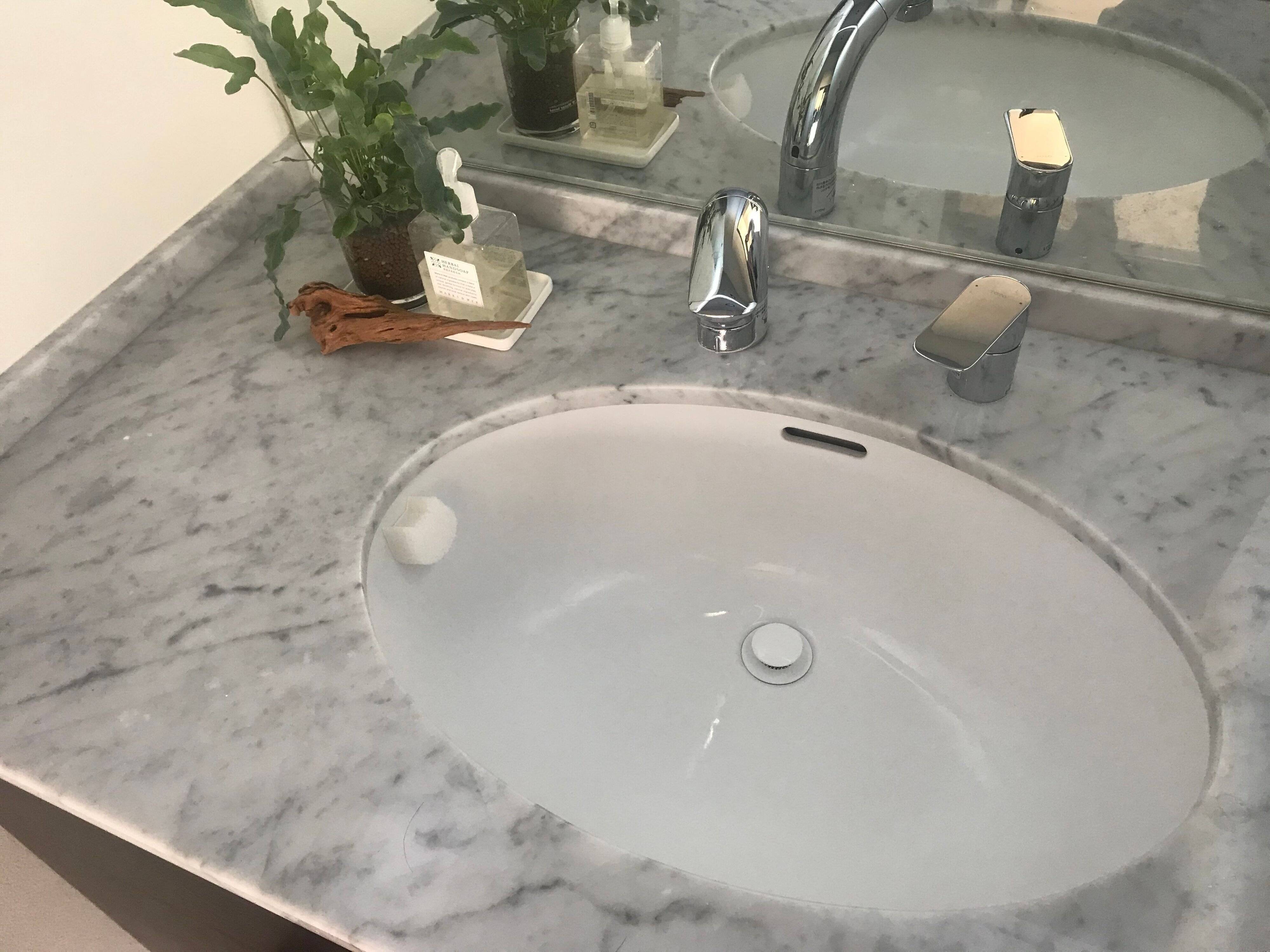 シンク内や洗面ボウルに常に貼り付けておくことで、"お皿を洗い終わった後ついでに"・"顔を洗った後ついでに"掃除をする習慣を癖づけすることができました。
