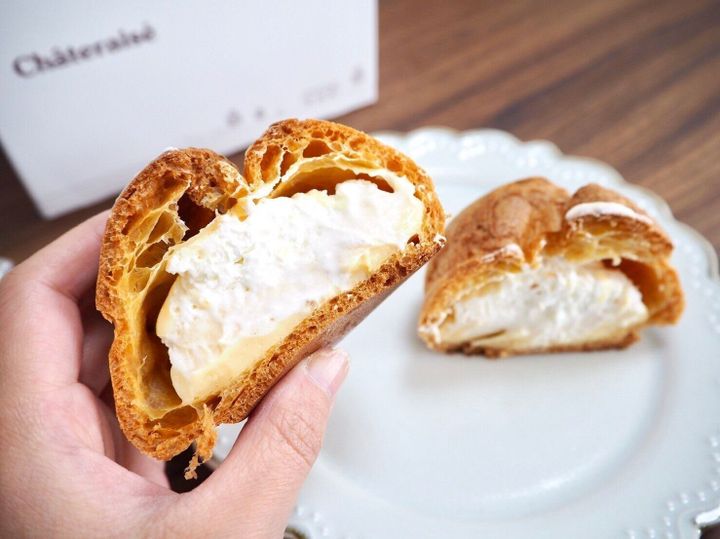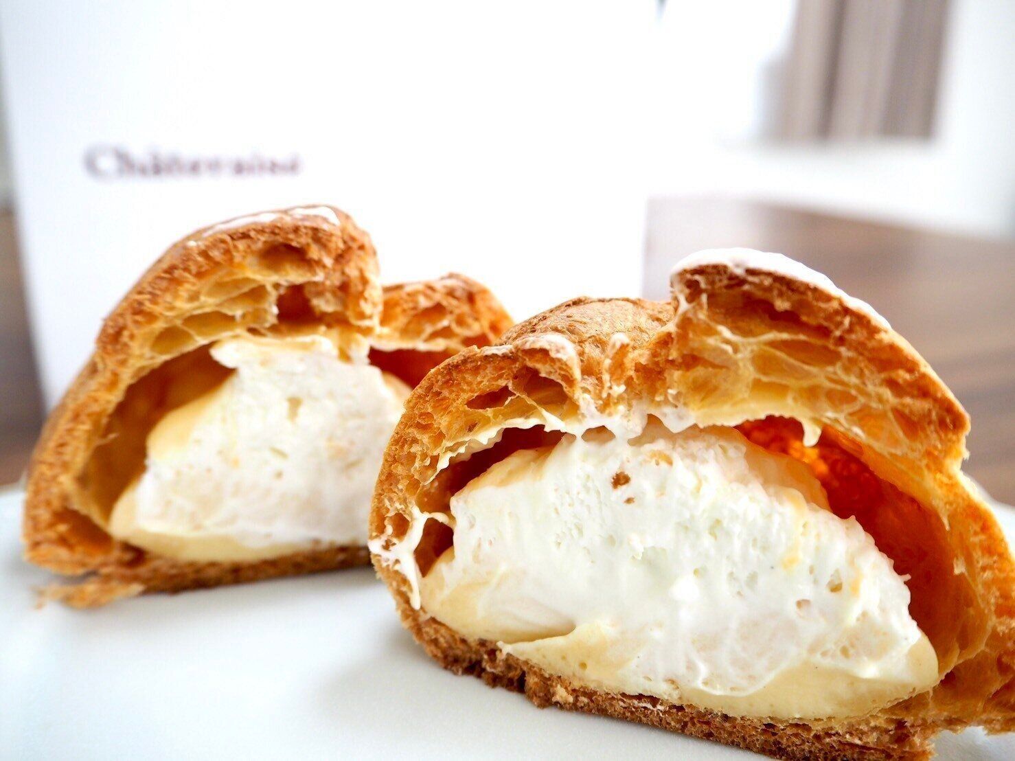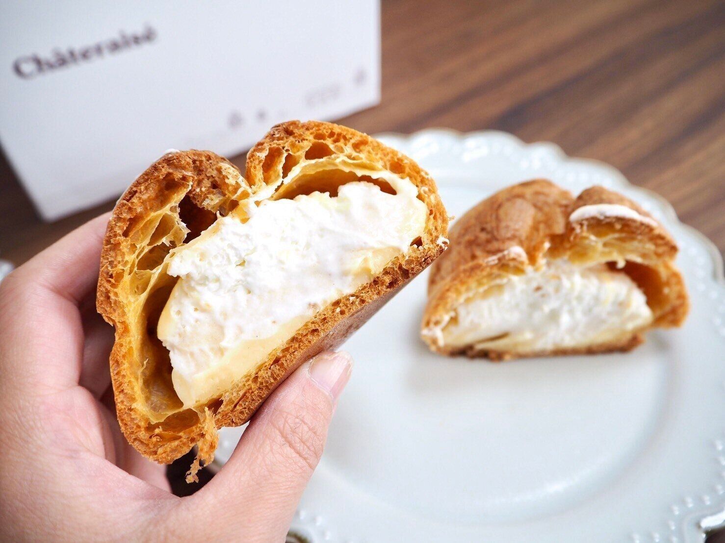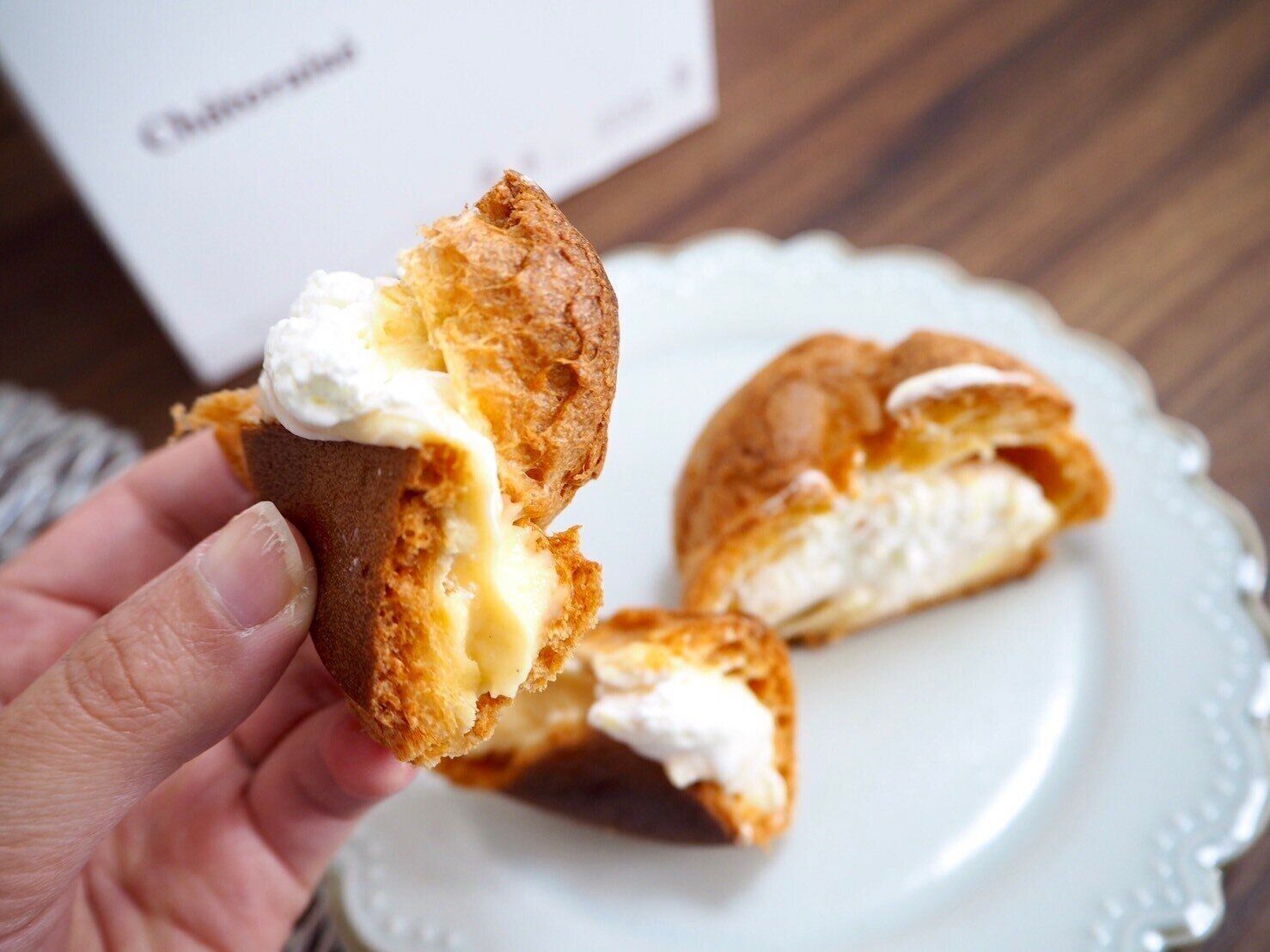 濃厚クリームにこのシュー生地が相性抜群!もちろんクリームだけ、生地だけを単体で食べてもおいしいですが、同時に食べた時のバランスが良い~。