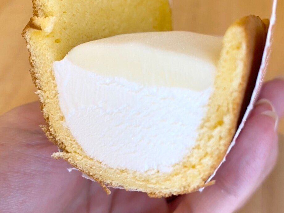 ふわふわ食感の生地の上に生クリームアイスをのせ特濃ミルクソースをかけたアイス。