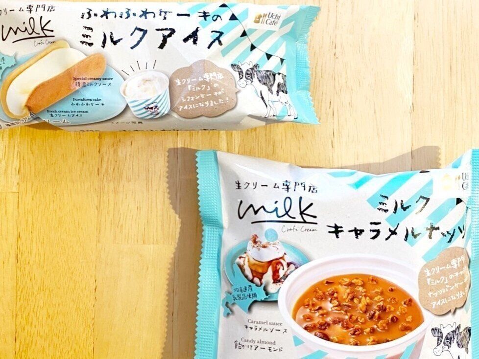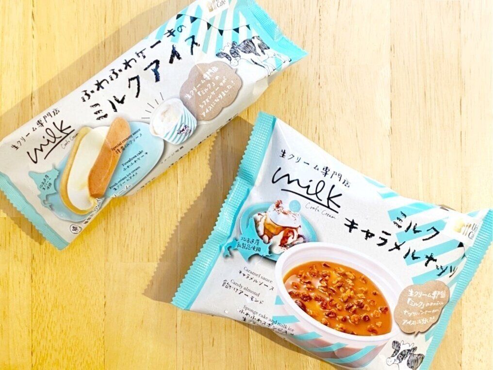2020年11月17日よりローソンで発売中の「ふわふわケーキのミルクアイス」と「ミルクキャラメルナッツアイス」。どちらも、日本初の生クリーム専門店Milk(ミルク)とのコラボ商品になっています。